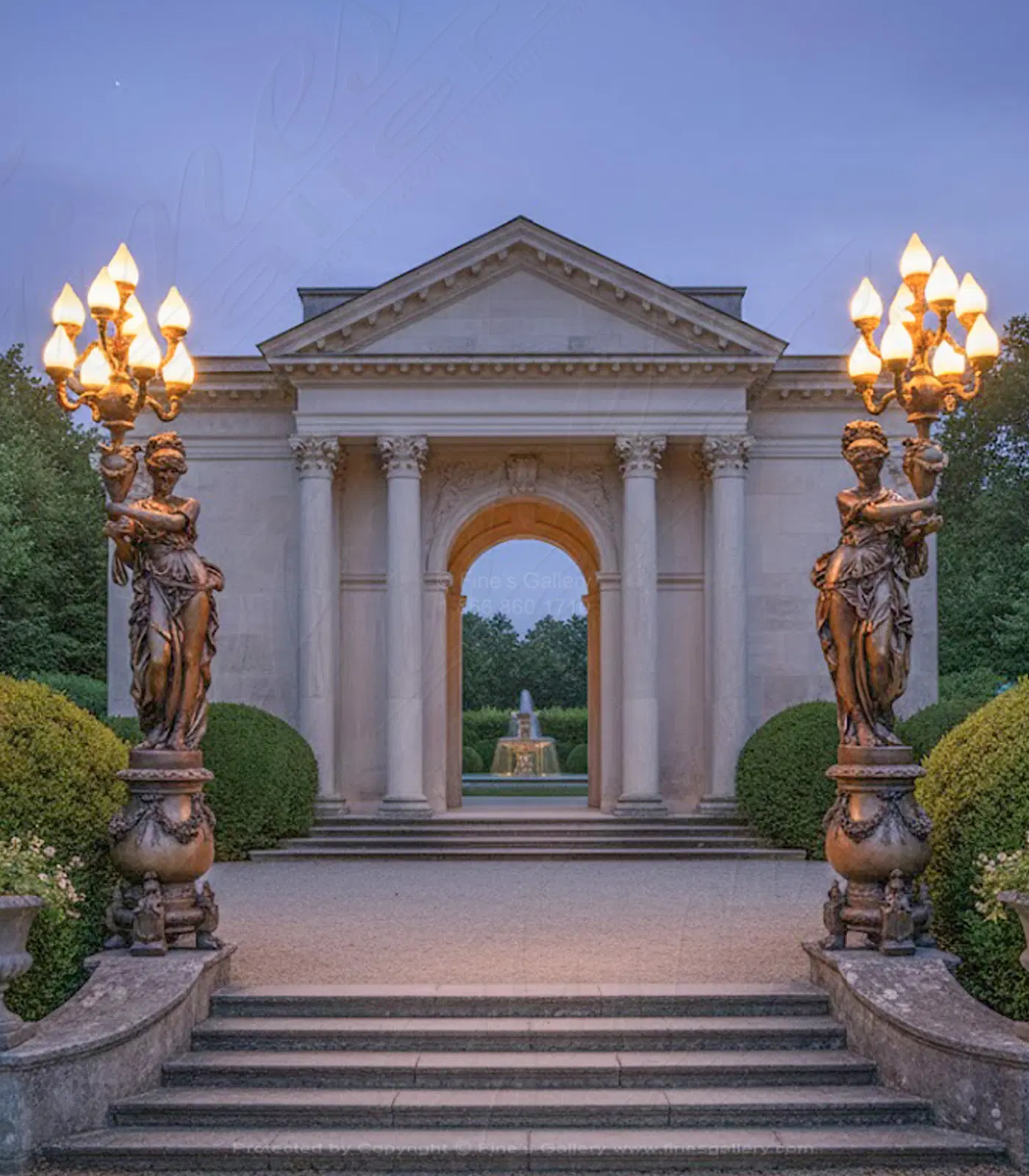 Enhance your outdoor space with this elegant pair of bronze lampposts, perfect for illuminating gardens, driveways, and pathways with sophisticated charm. Crafted with premium materials and exquisite detailing, these durable lighting fixtures combine timeless design with practical functionality, creating a welcoming ambiance while improving security around your property. The rich bronze finish complements any landscape design, making these lampposts a stunning architectural accent for your home's exterior.