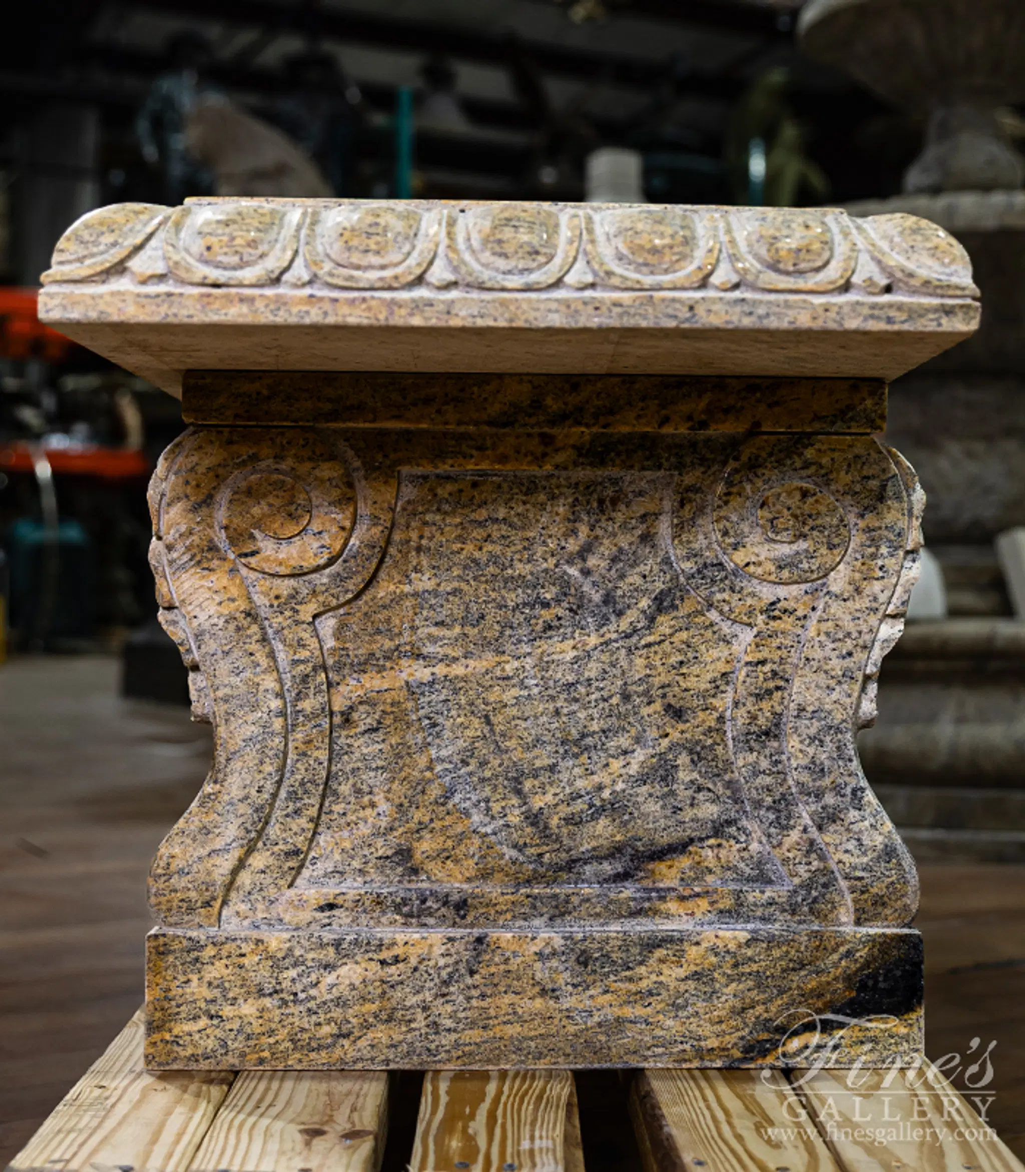 Antique Gold Granite Bench. Our granite benches make an excellent addition to your garden. We have matching fountains and planters available to accompany these rare treasures!