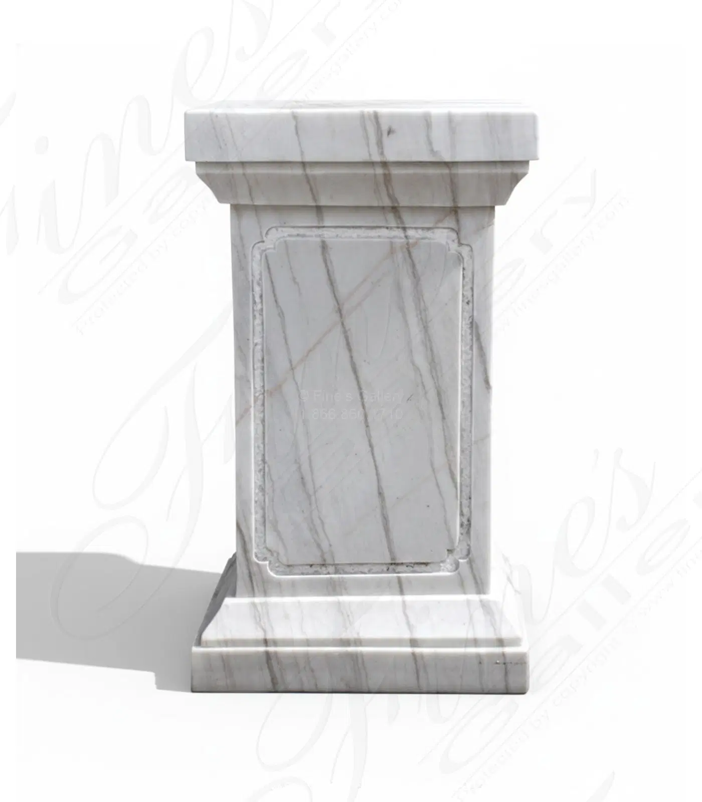 White and Gray Marble Square Base - Classic Statue Pedestal with Natural Veining