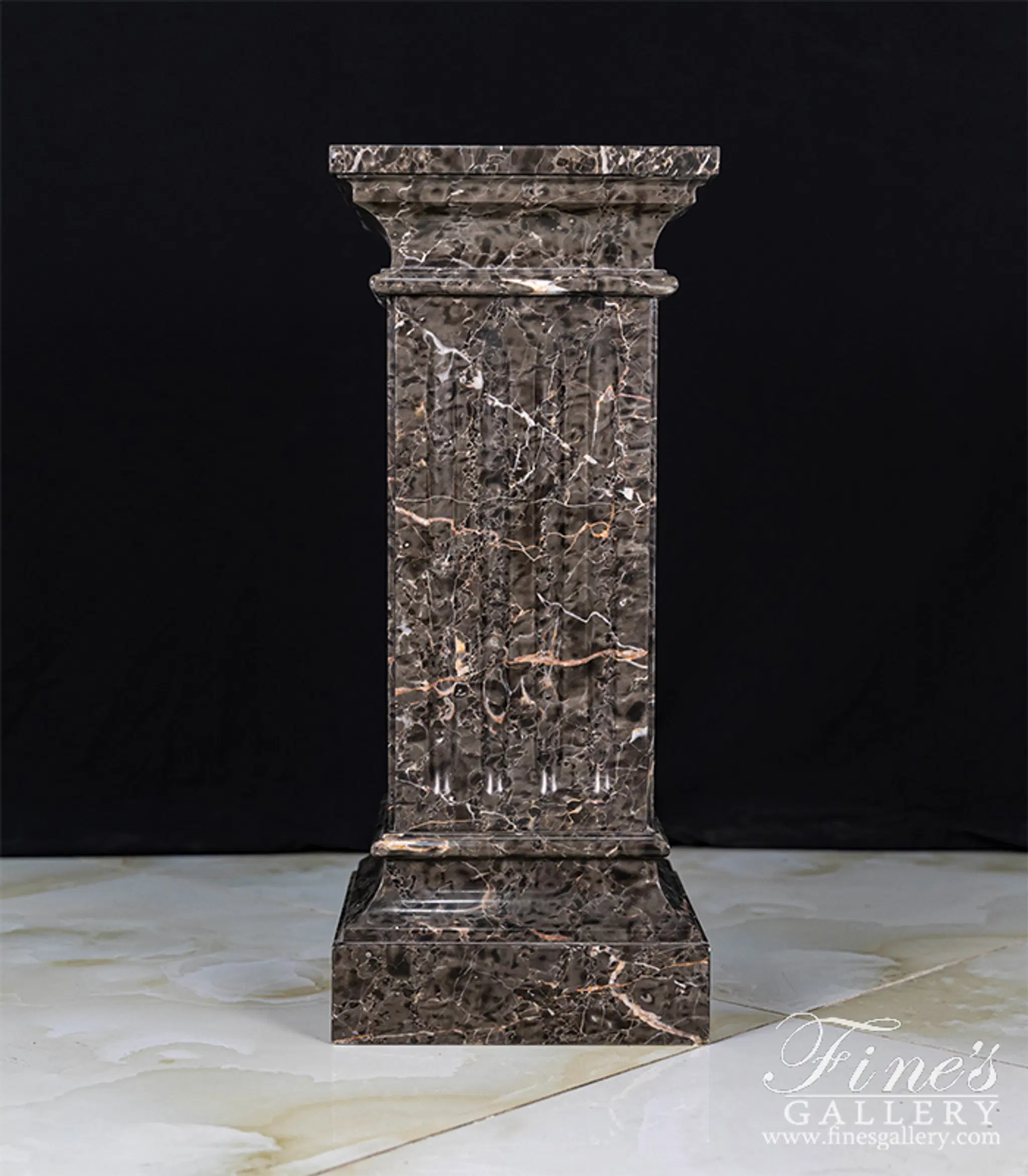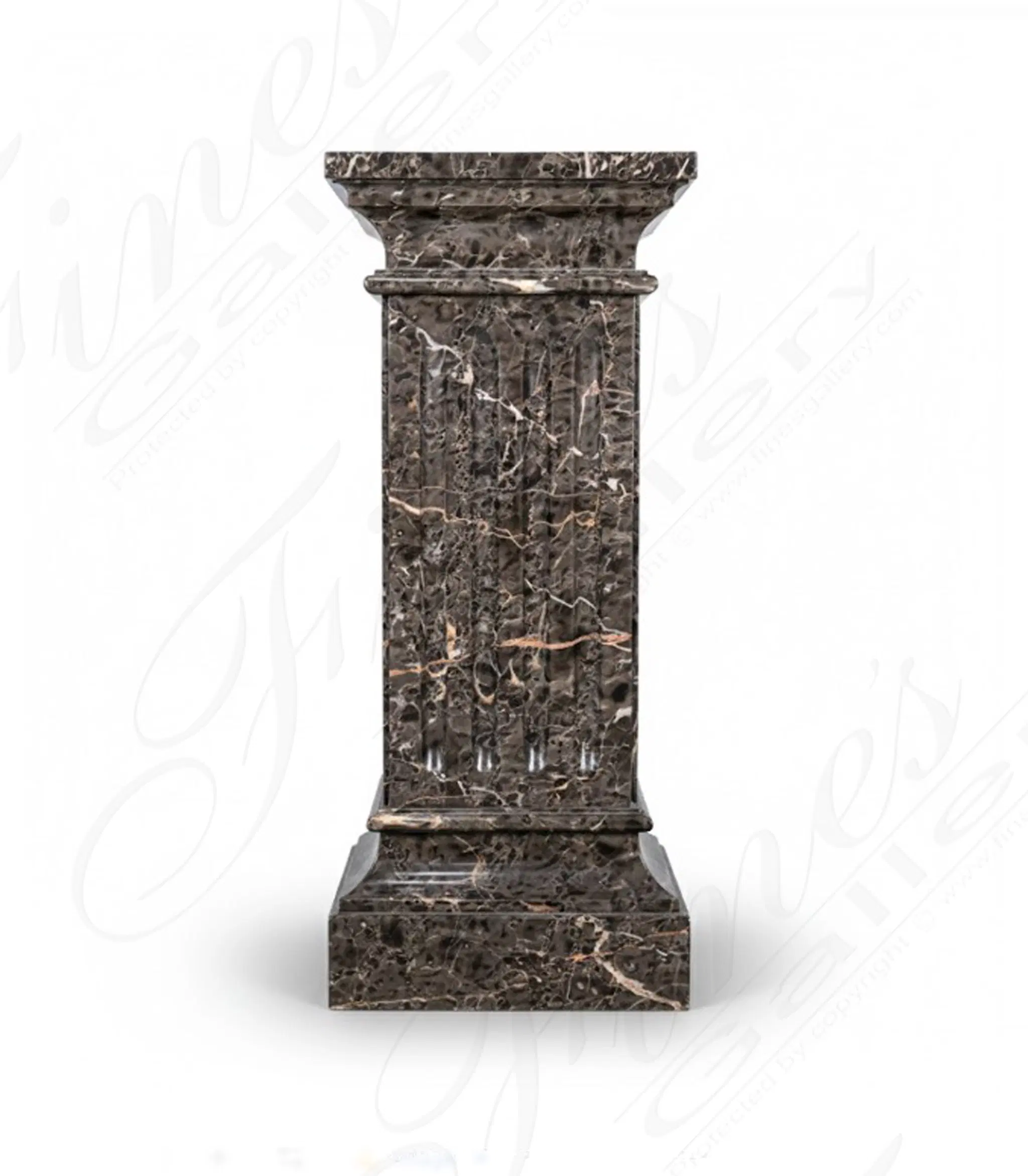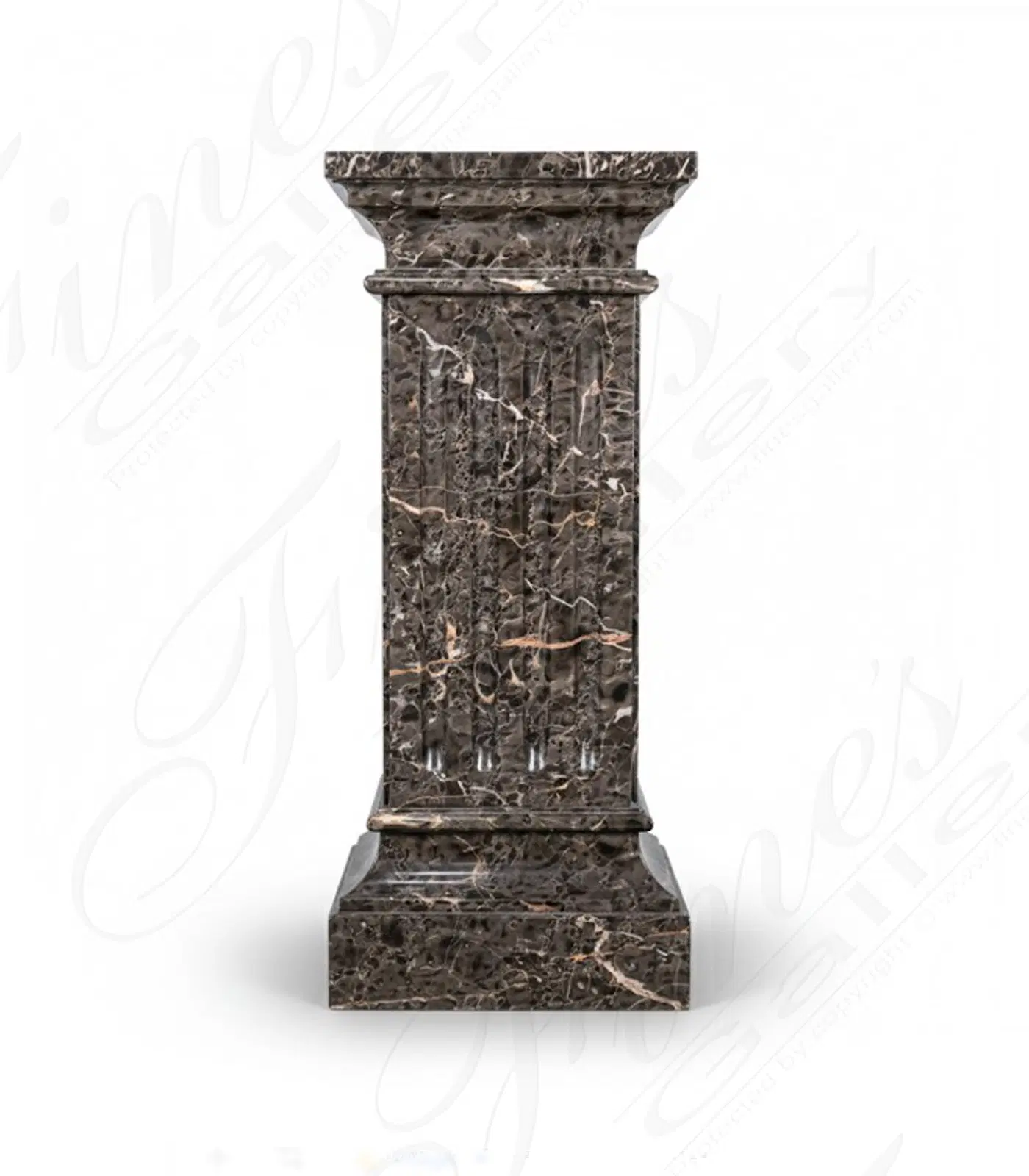 Polished Marquina Marble Pedestal with Fluted Column Detail - Elegant Art Display Stand - MBS-203
