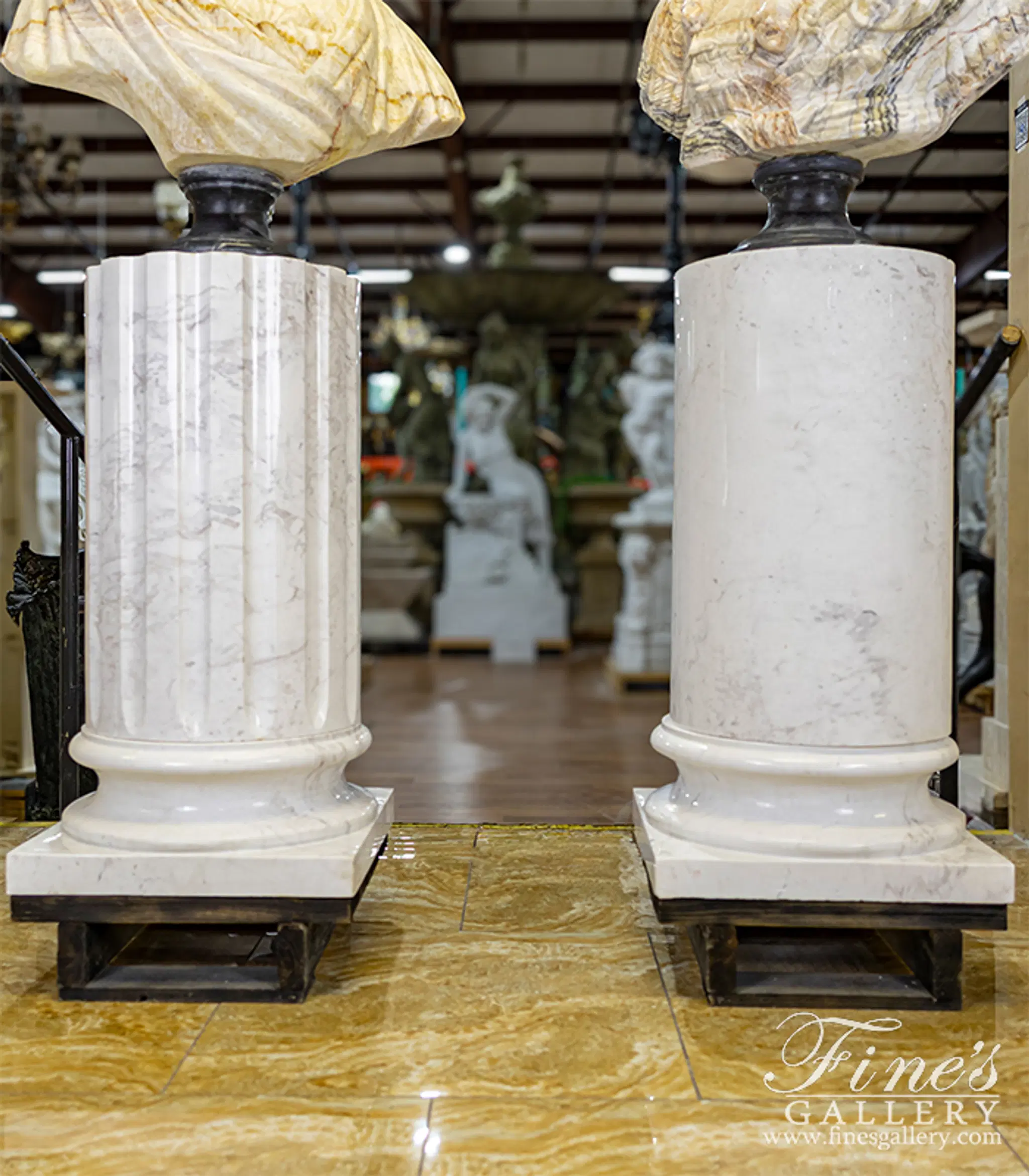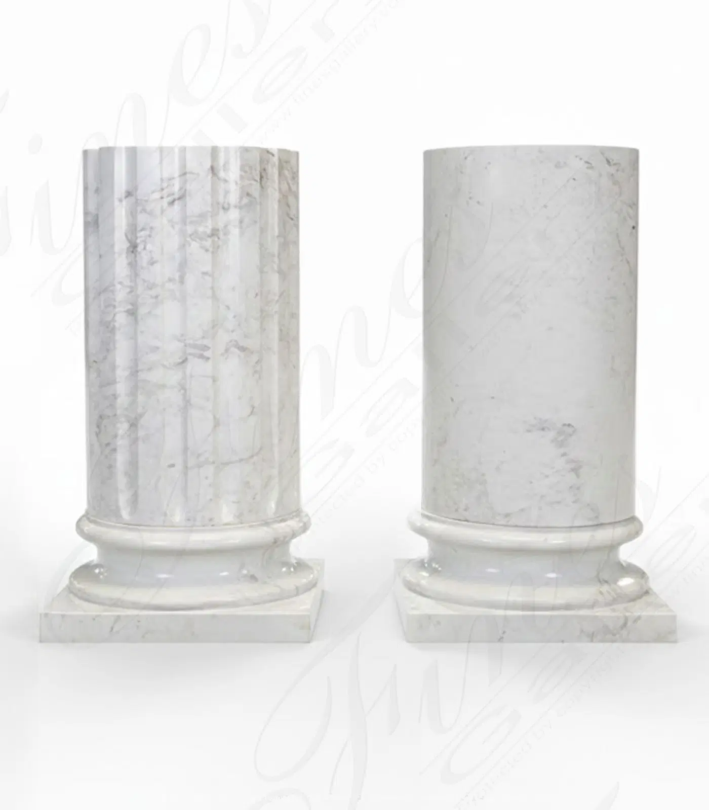 Elegant Statuary White Marble Pedestal with Half Column Design - Available in Smooth or Fluted Finish - Premium Quality Home Decor Base for Sculptures, Vases, or Decorative Objects - Timeless Classical Style Complements Any Interior - Expertly Crafted from Fine White Marble for Lasting Beauty. Priced individually with the option to purchase as a pair.