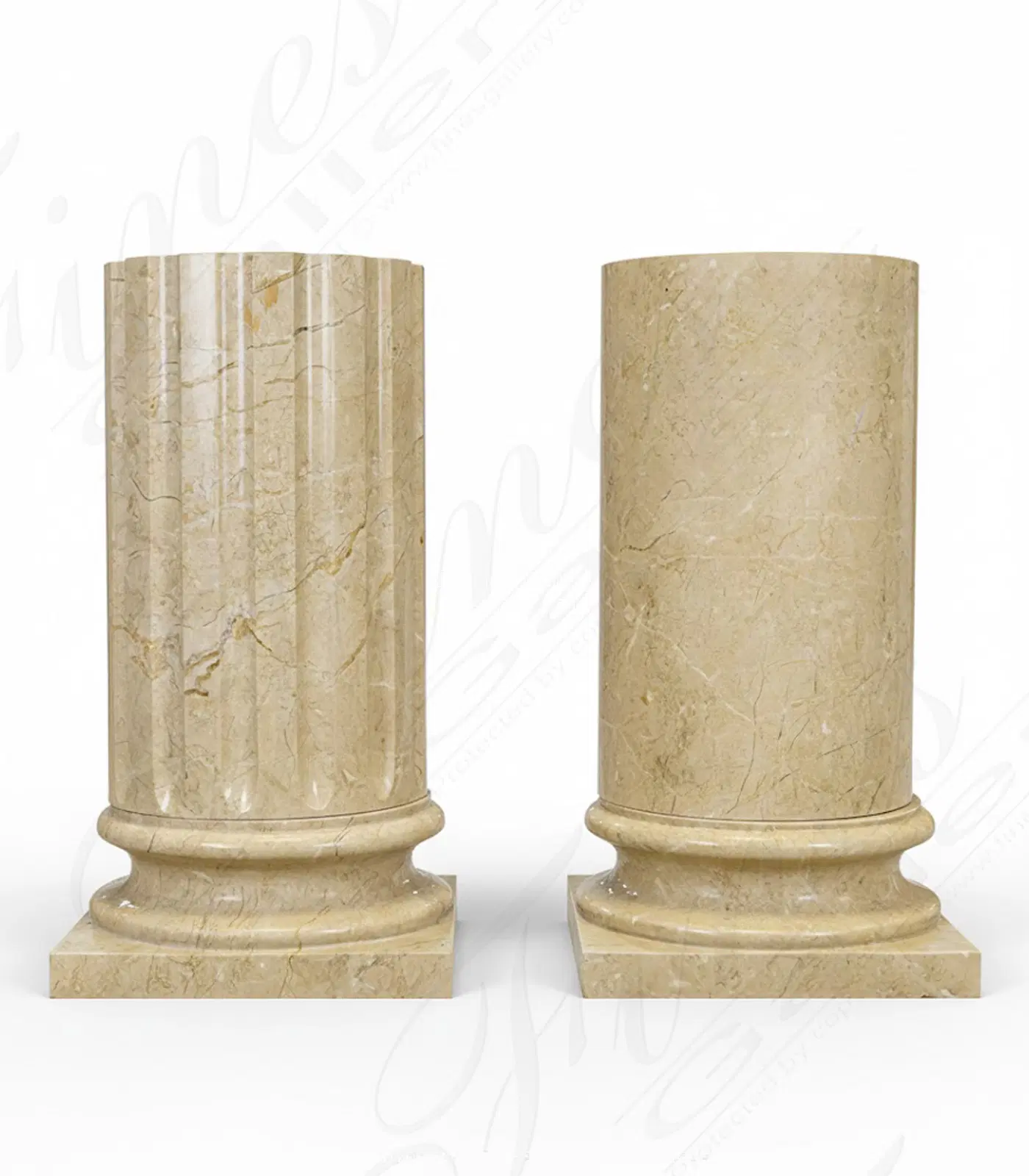 Royal Cream Marble Pedestal - Elegant High Polished Decorative Base
