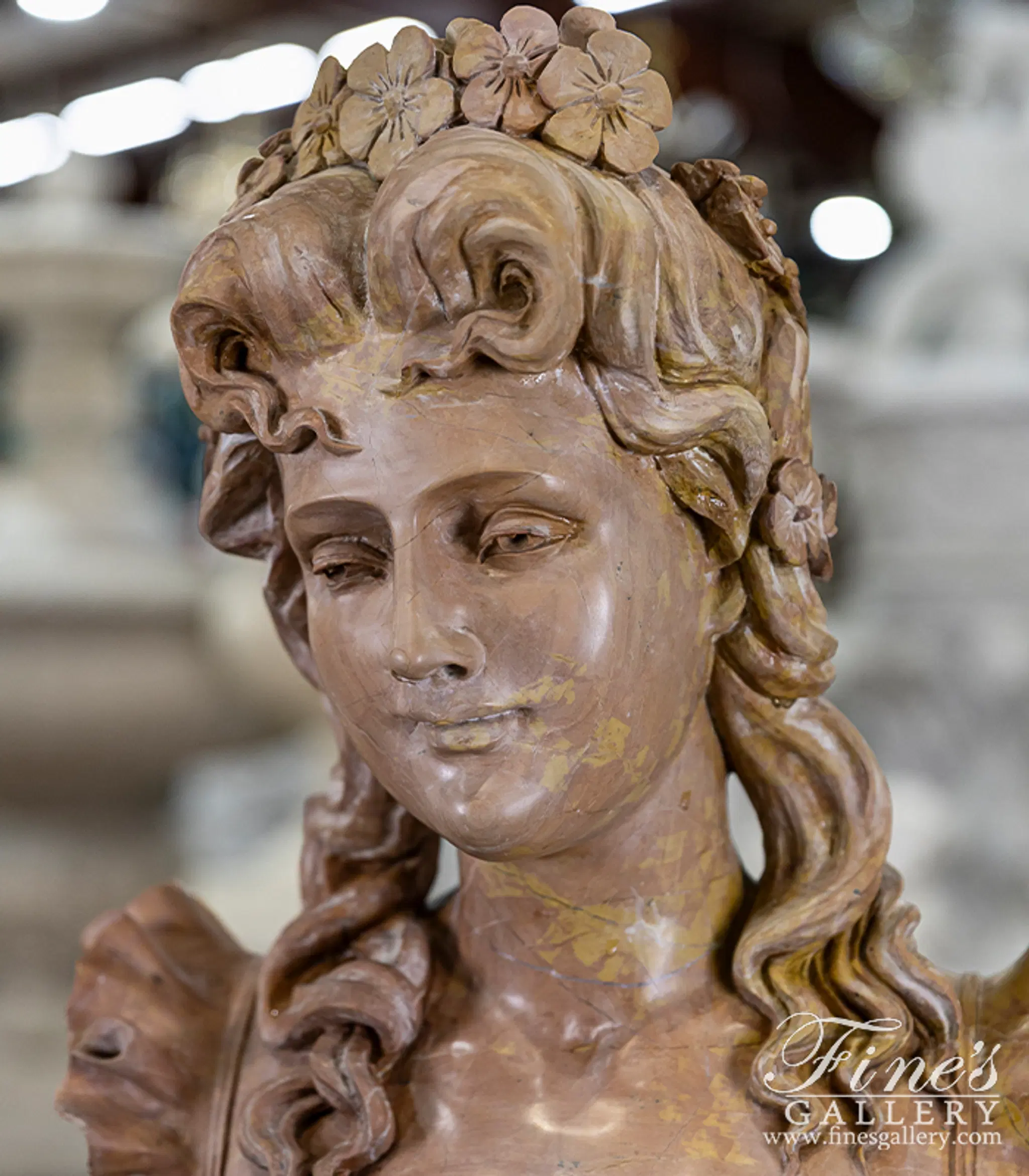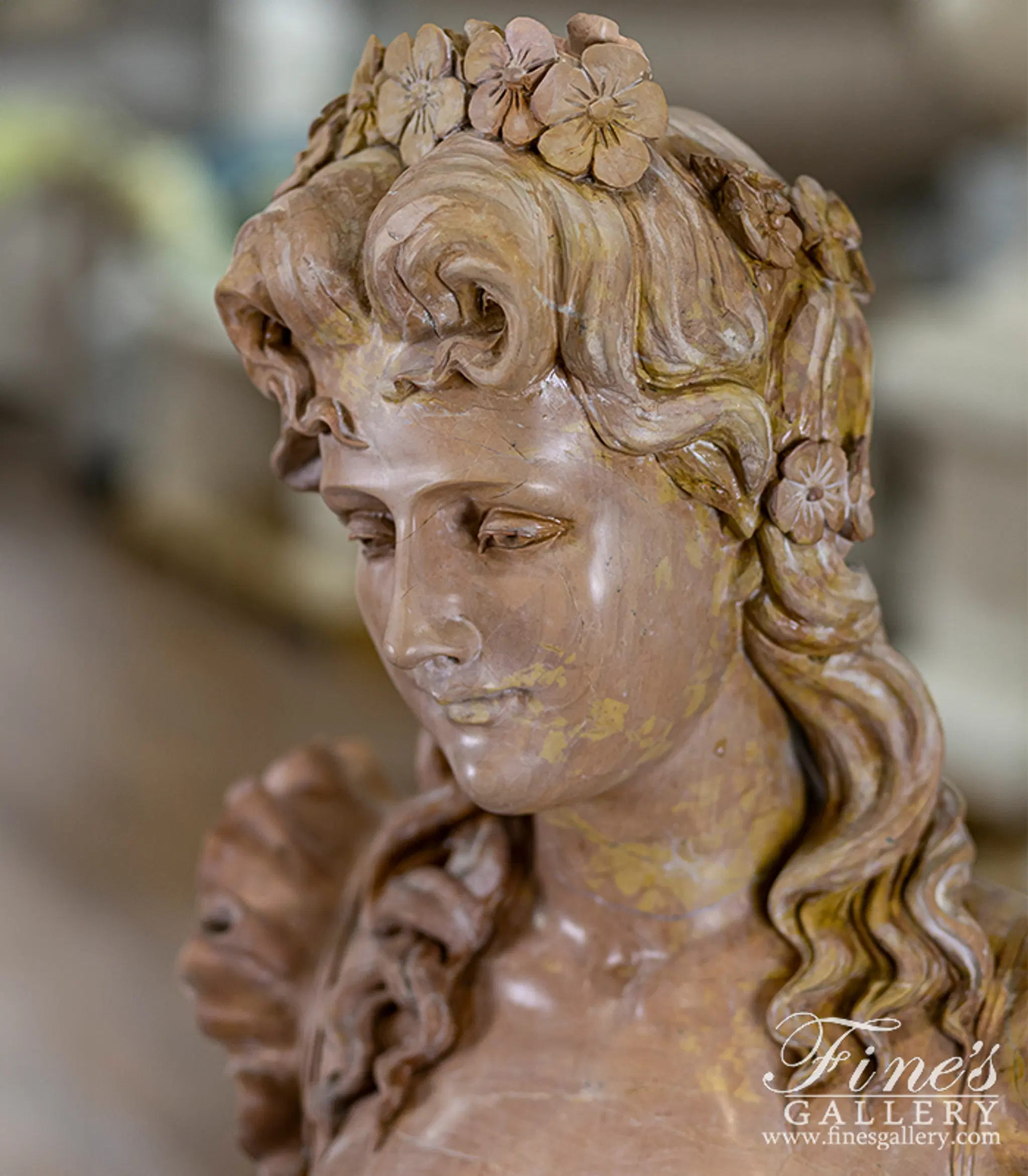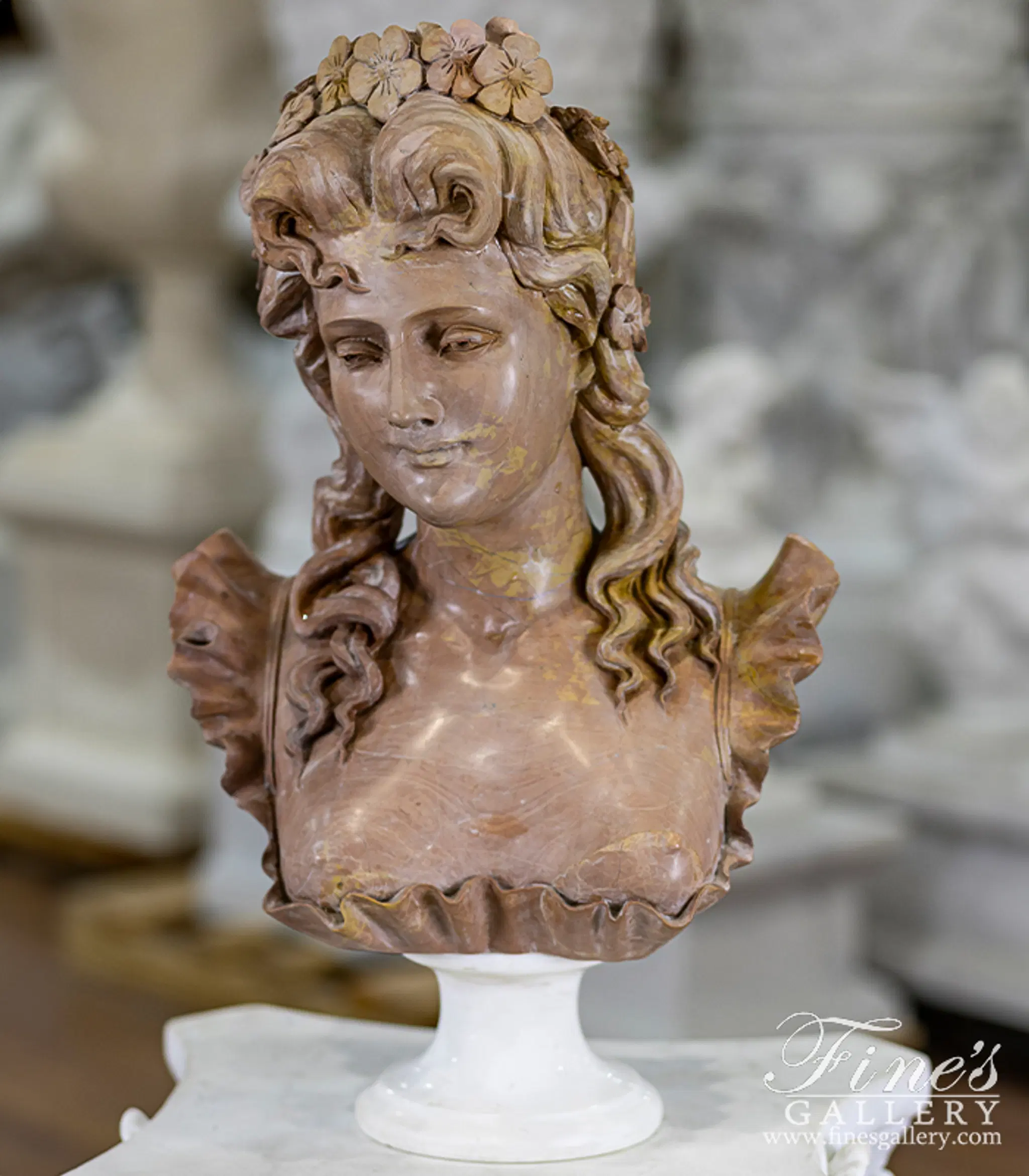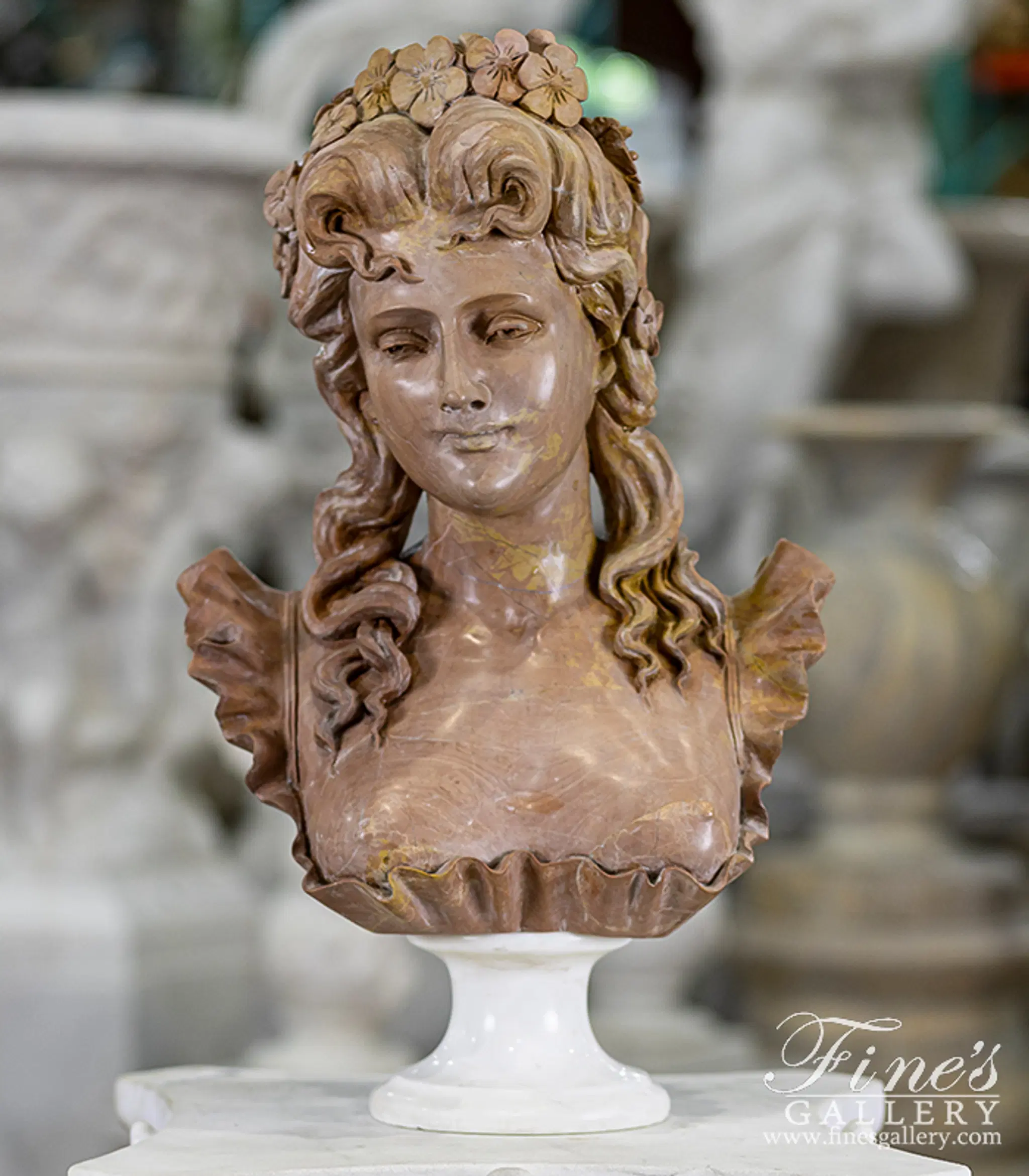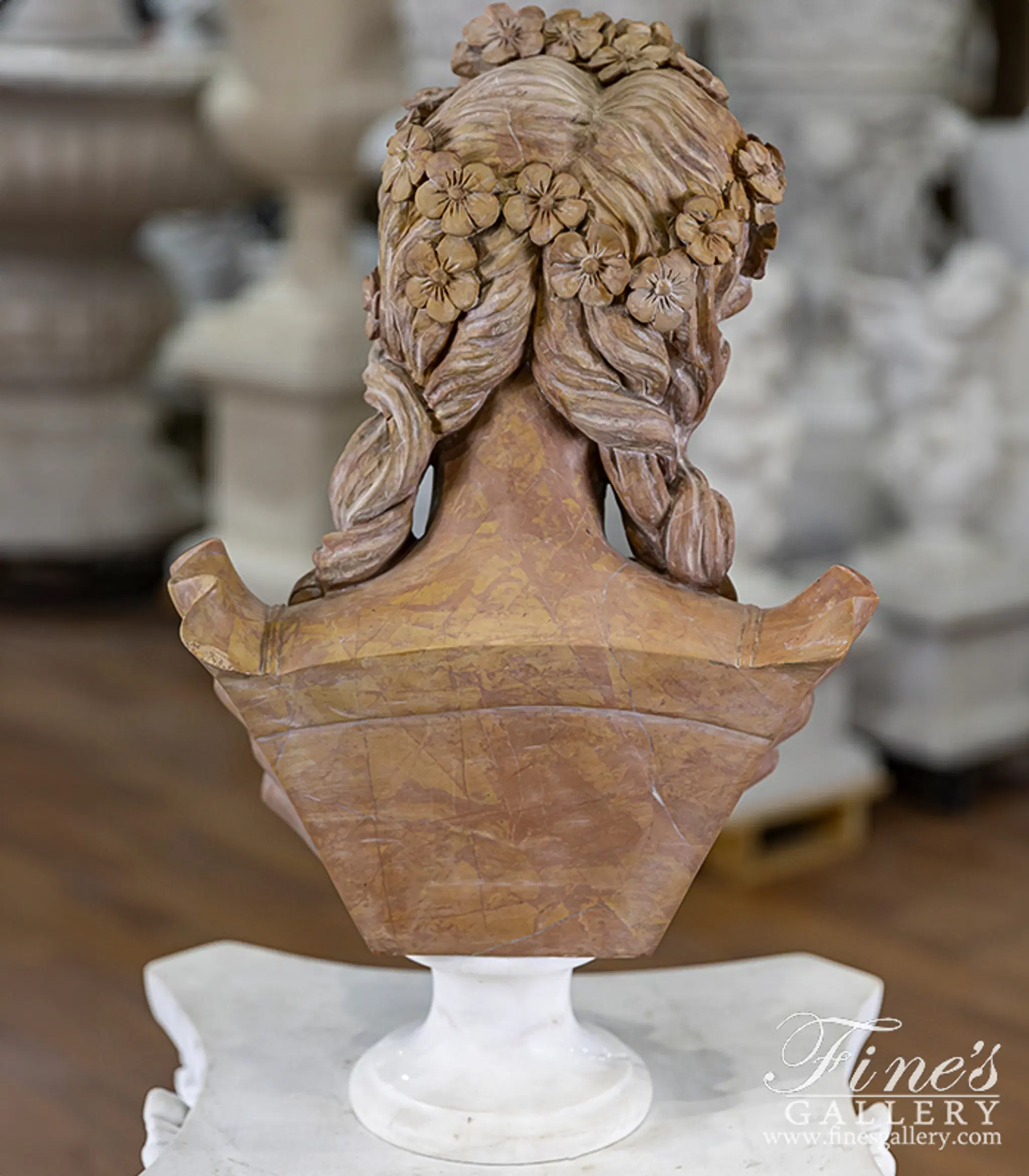 A Vintage Marble Bust of a 19th Century Noblewoman. Hand Carved from a rare and unusual red hue marble. Approx age is estimated at 22 years + or -.