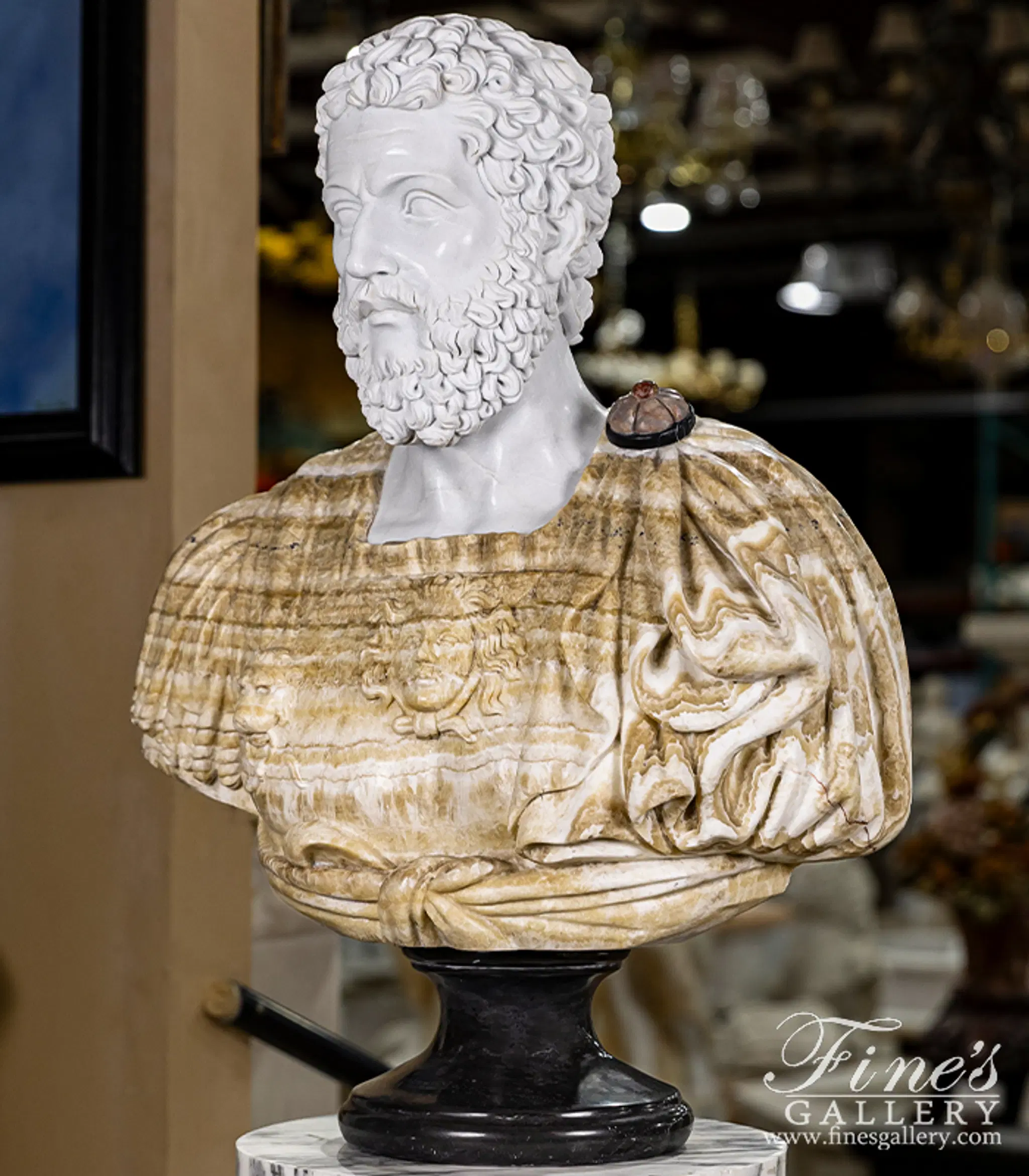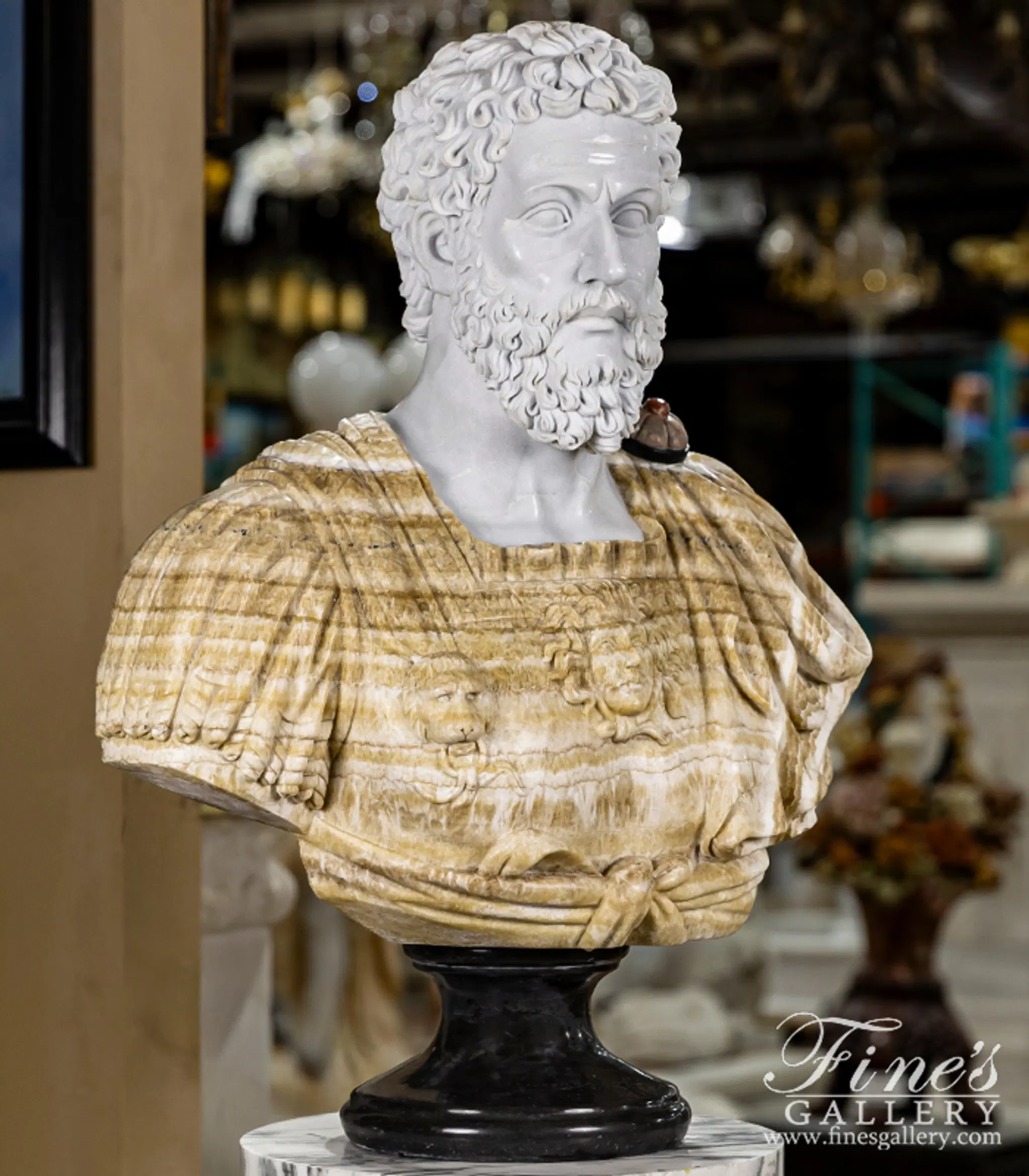 Roman Soldier Bust in Marble and Onyx - MBT-514