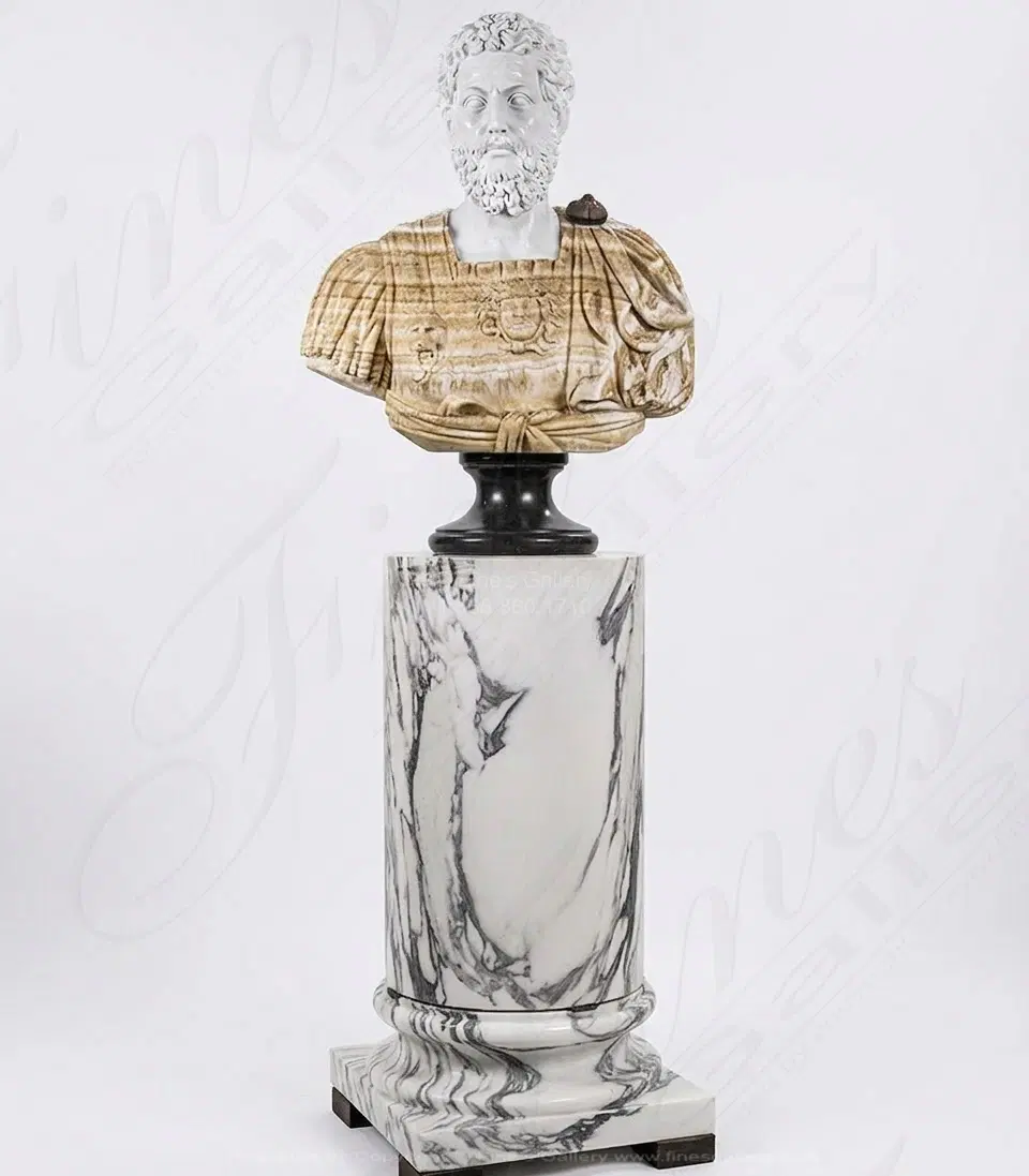 Roman Soldier Bust in Marble and Onyx - MBT-514 (View 2)