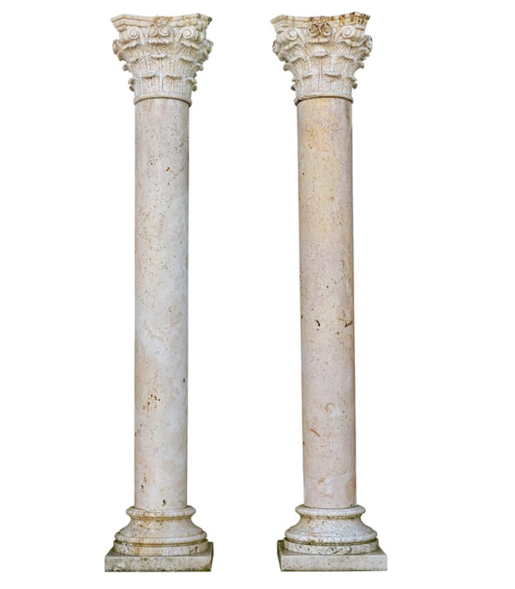 Corinthian Style Columns In Classic Light Travertine Marble - MCOL-294