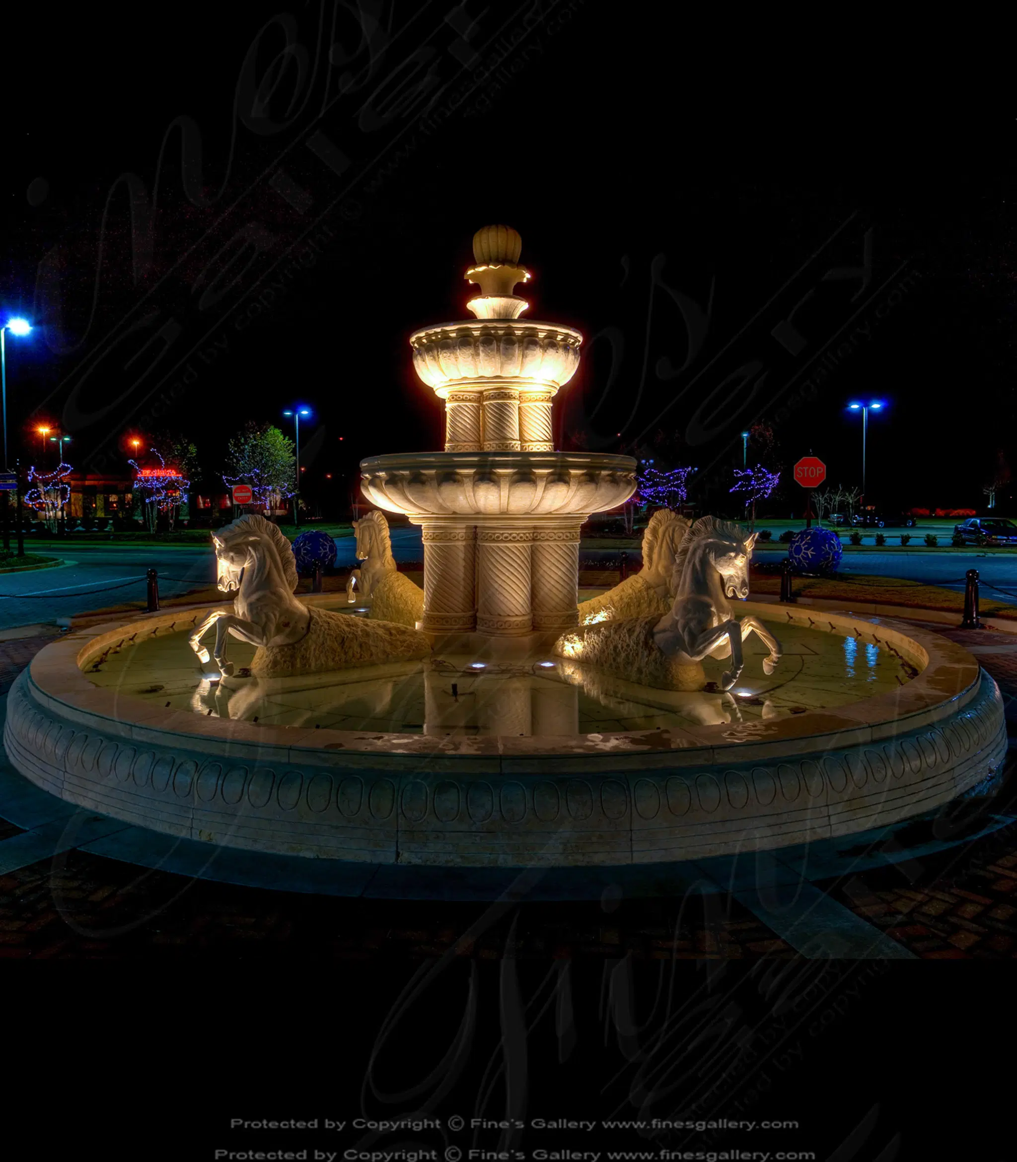 Roman Horses Marble Fountain