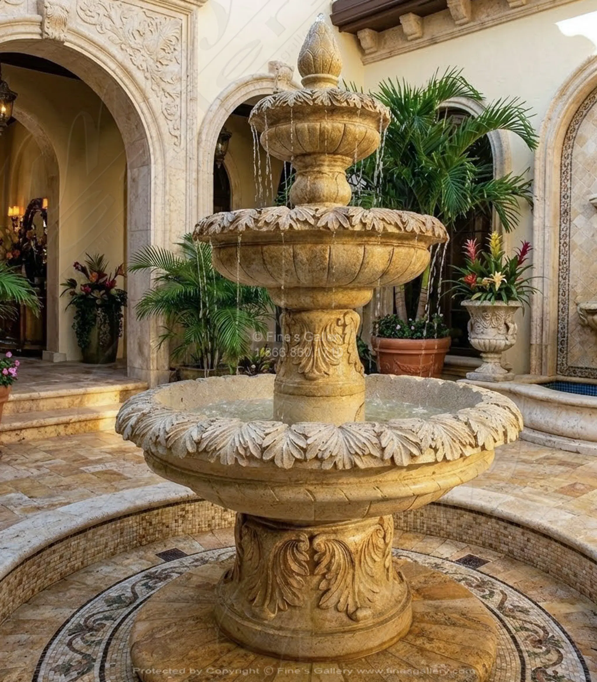 Three Tier Acanthus Style Fountain in Classic Light Travertine