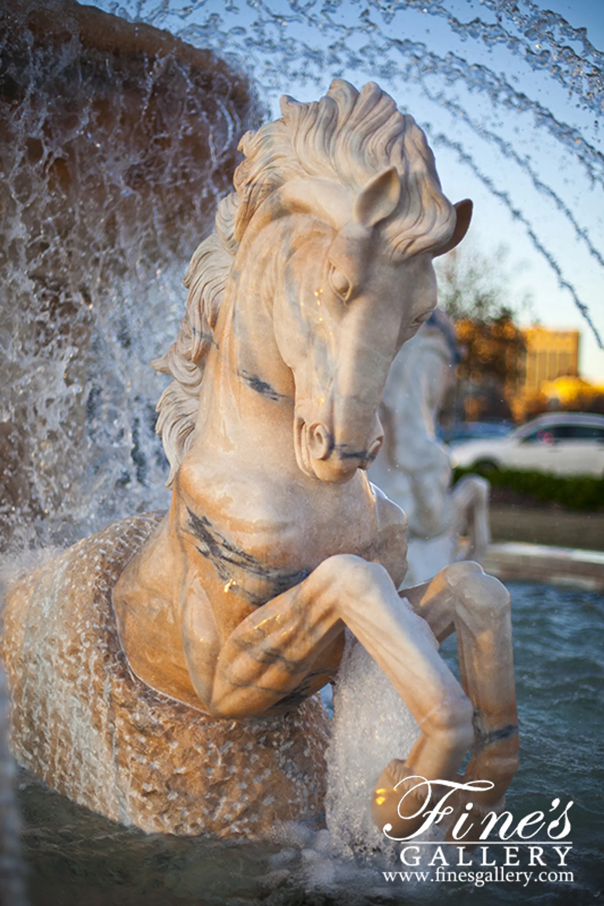 Rearing Horses Grecian Marble Fountain - MF-1230 (View 6)