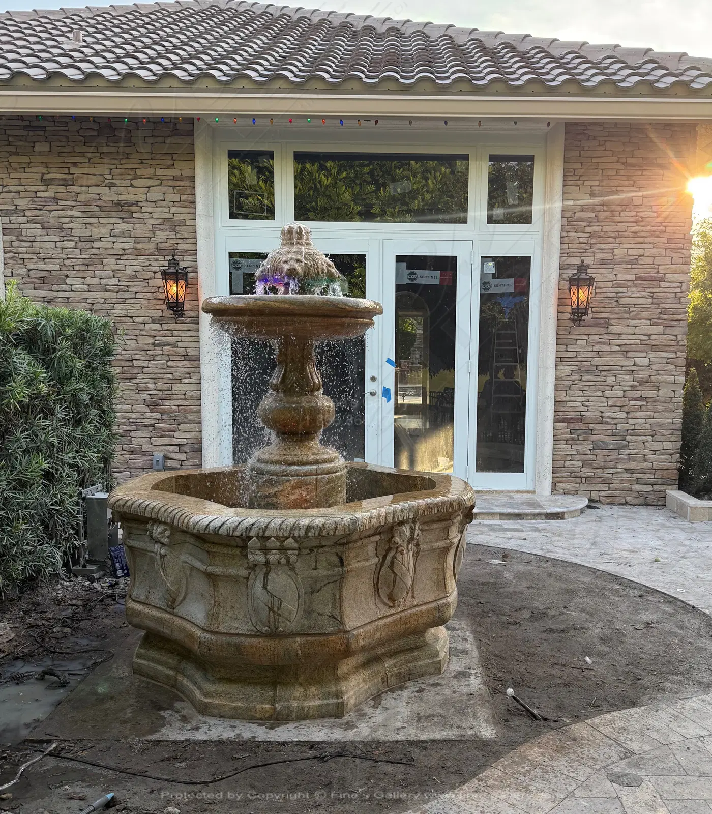This elegant carved granite fountain is very exquisite. The pool wall stands 35 1/2 inch tall. Ideal for the most high end residential or commercial applications. Granite Lion Head Fountain