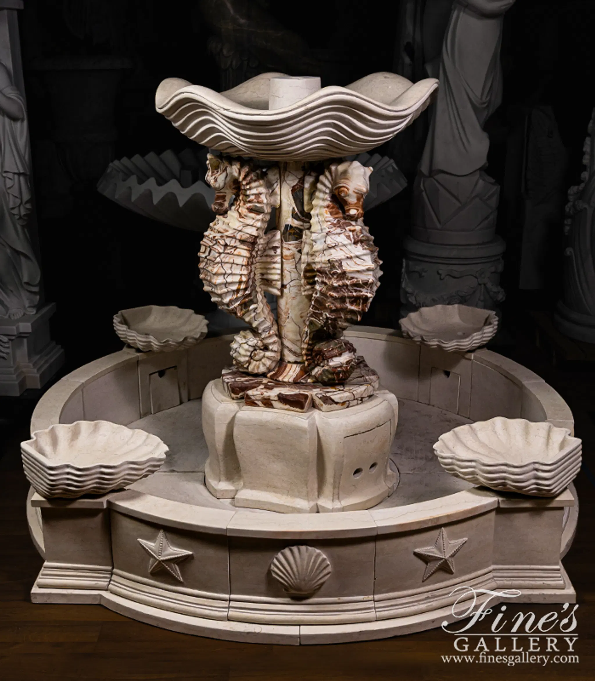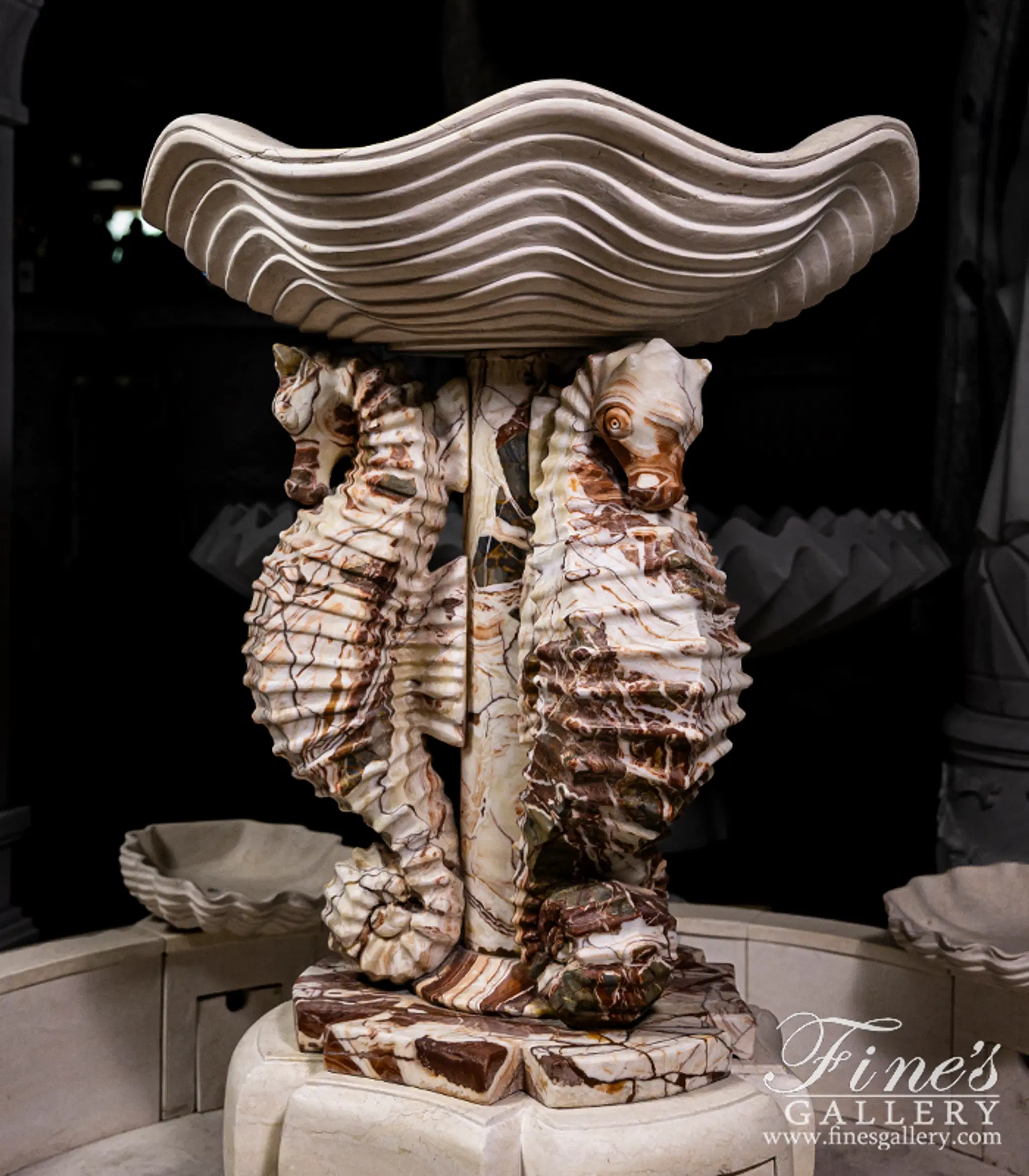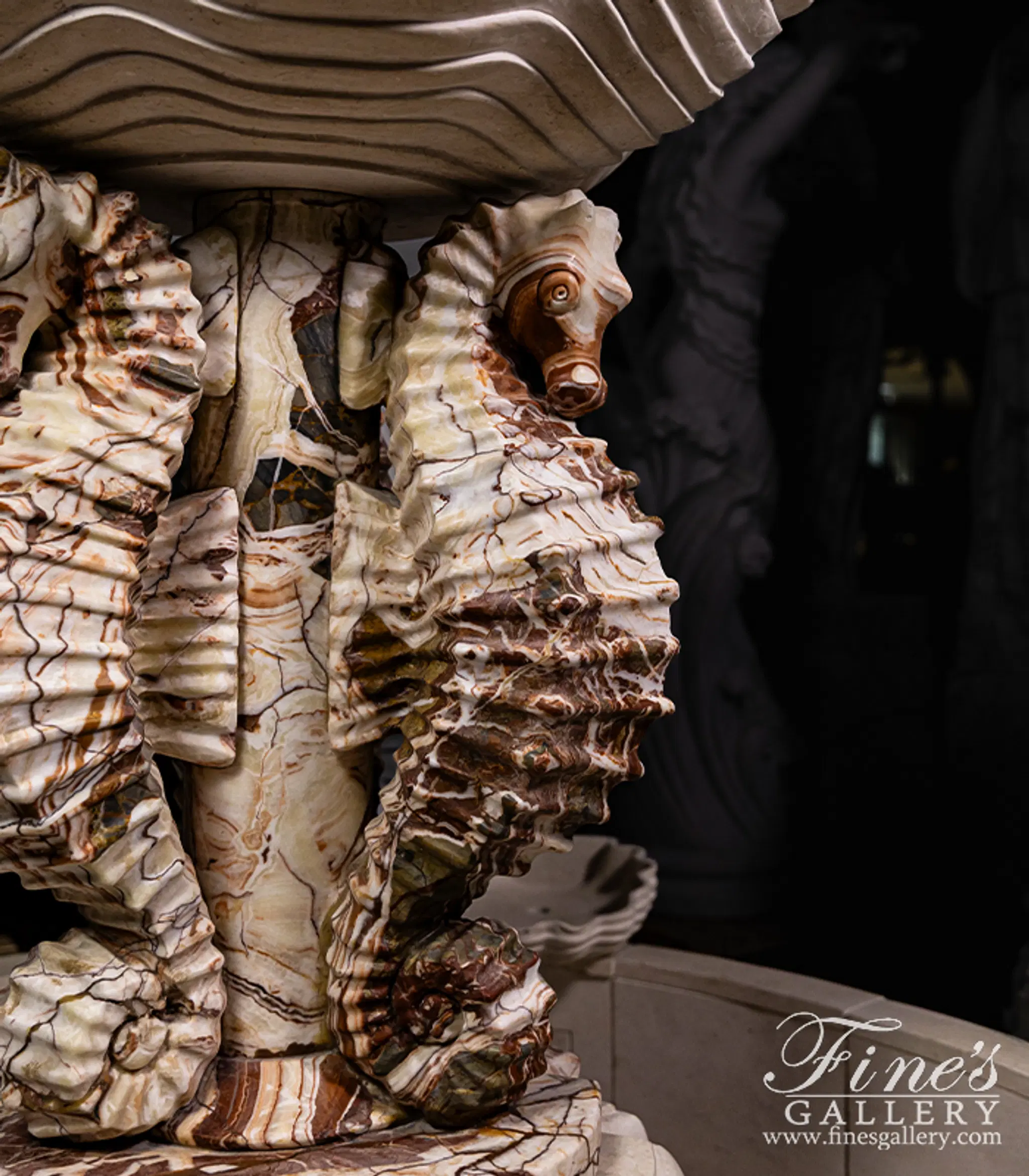 Seahorse Theme Marble Fountain - Two-Tone Red, White & Cream Exotic Marble with Multi-Tier Water Feature - MF-1540 (View 10)