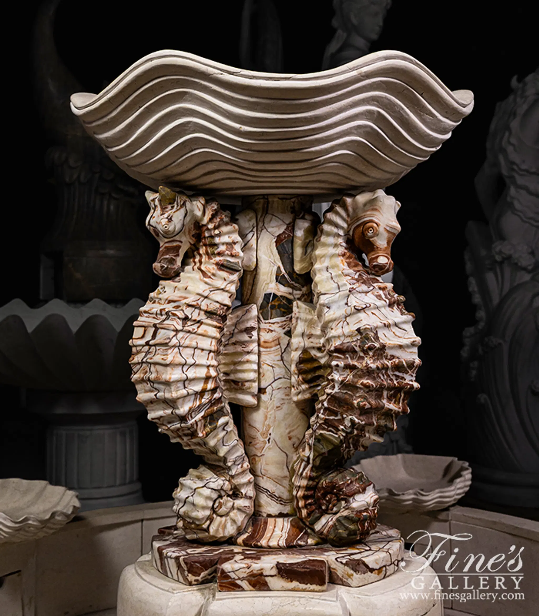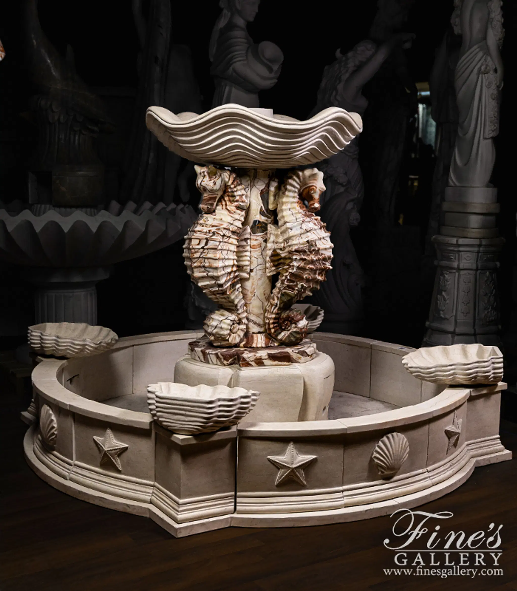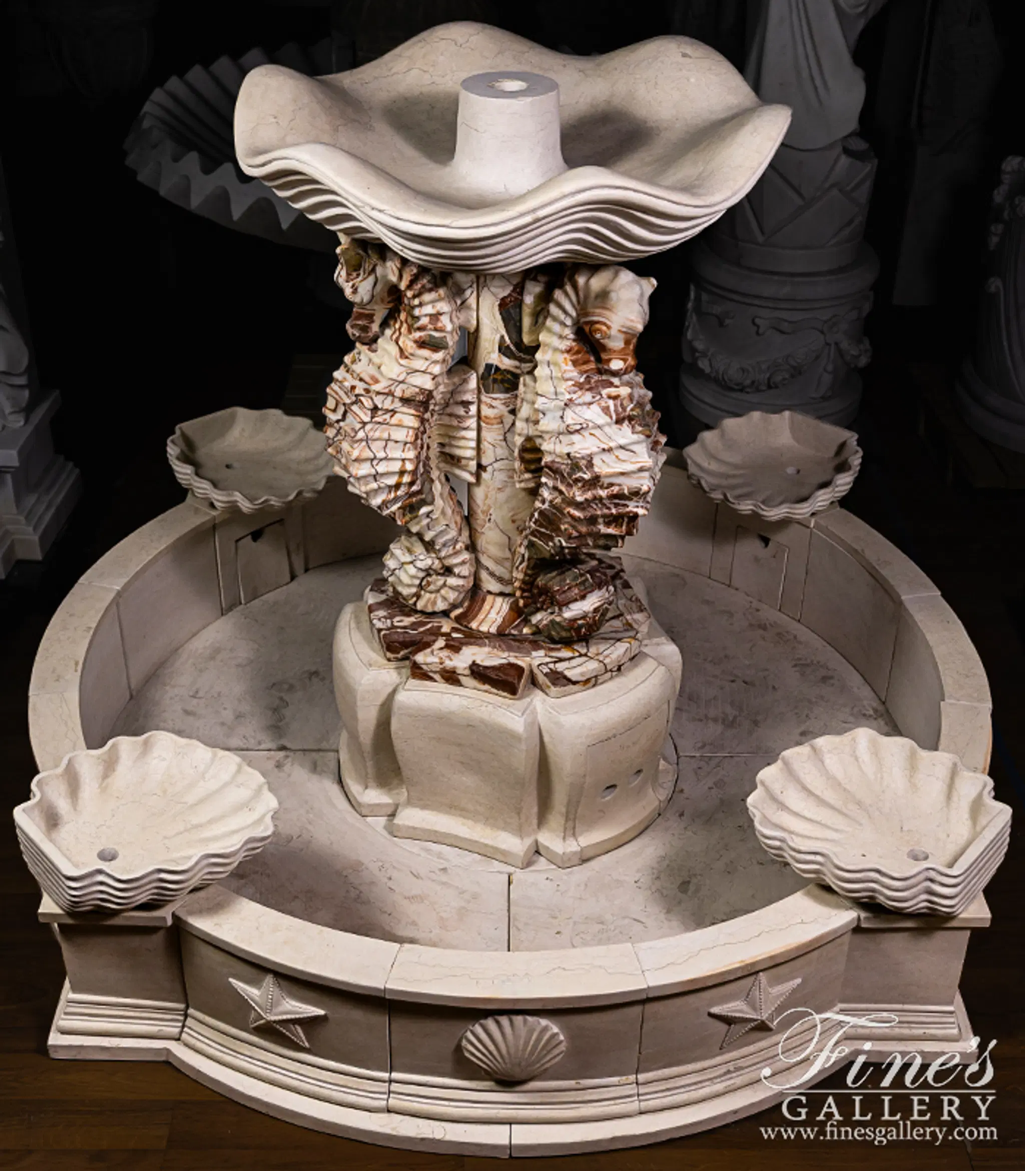 Seahorse Theme Marble Fountain - Two-Tone Red, White & Cream Exotic Marble with Multi-Tier Water Feature - MF-1540 (View 10)