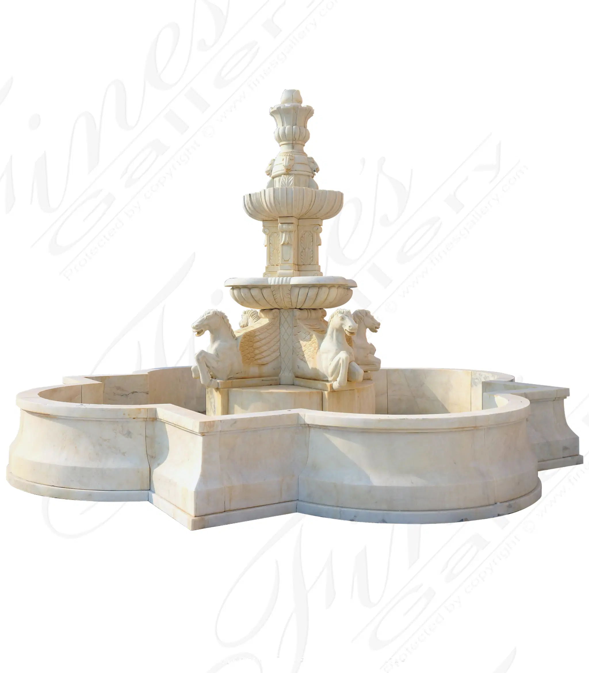 Pictured in antique white marble this Aged Marble Pegasus Fountain has been inspired from mythical greece, where artisans first brought the enchanting greek mythology to life in massive hand carved marble structures.
