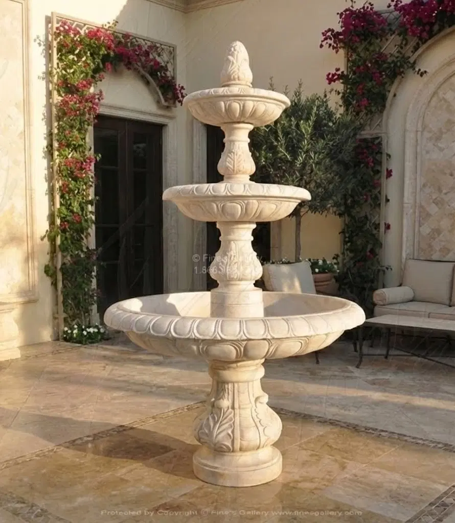 Three Tiered Fountain in Light Rosetta Marble - MF-1712