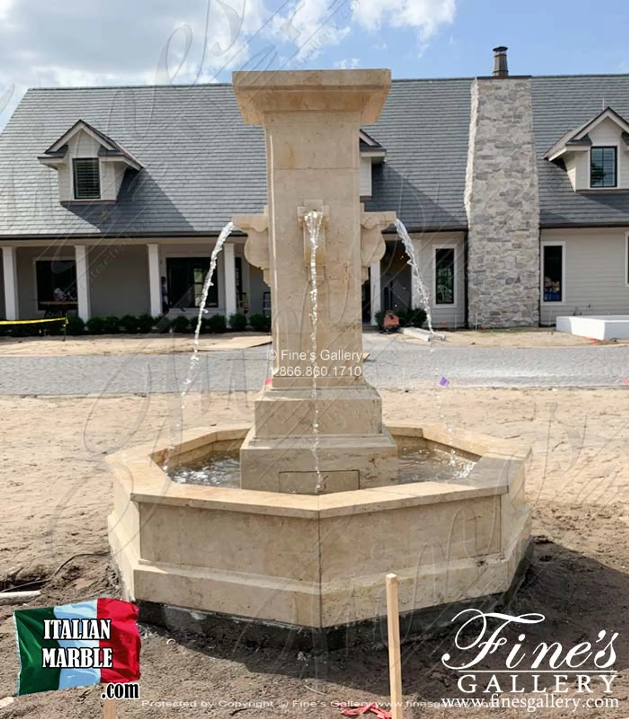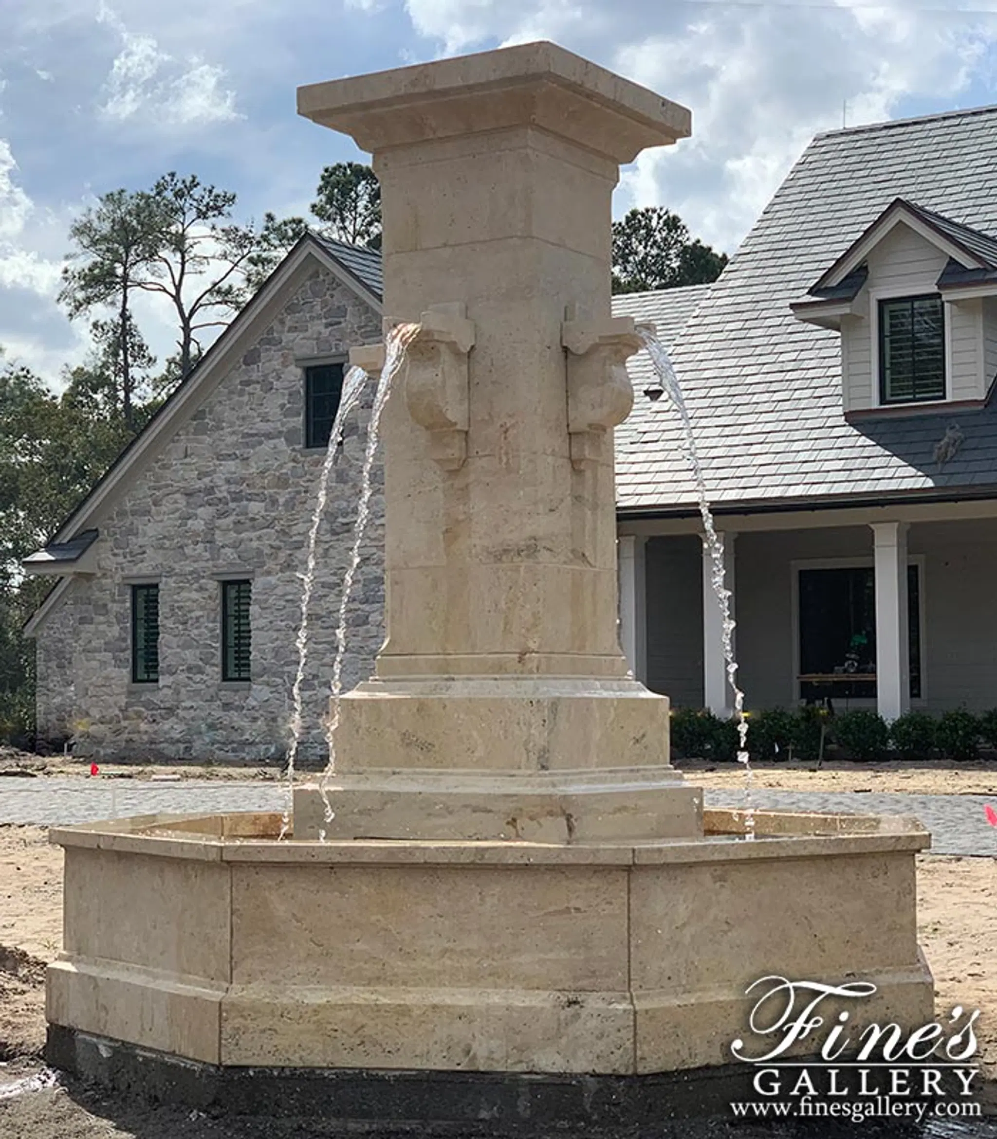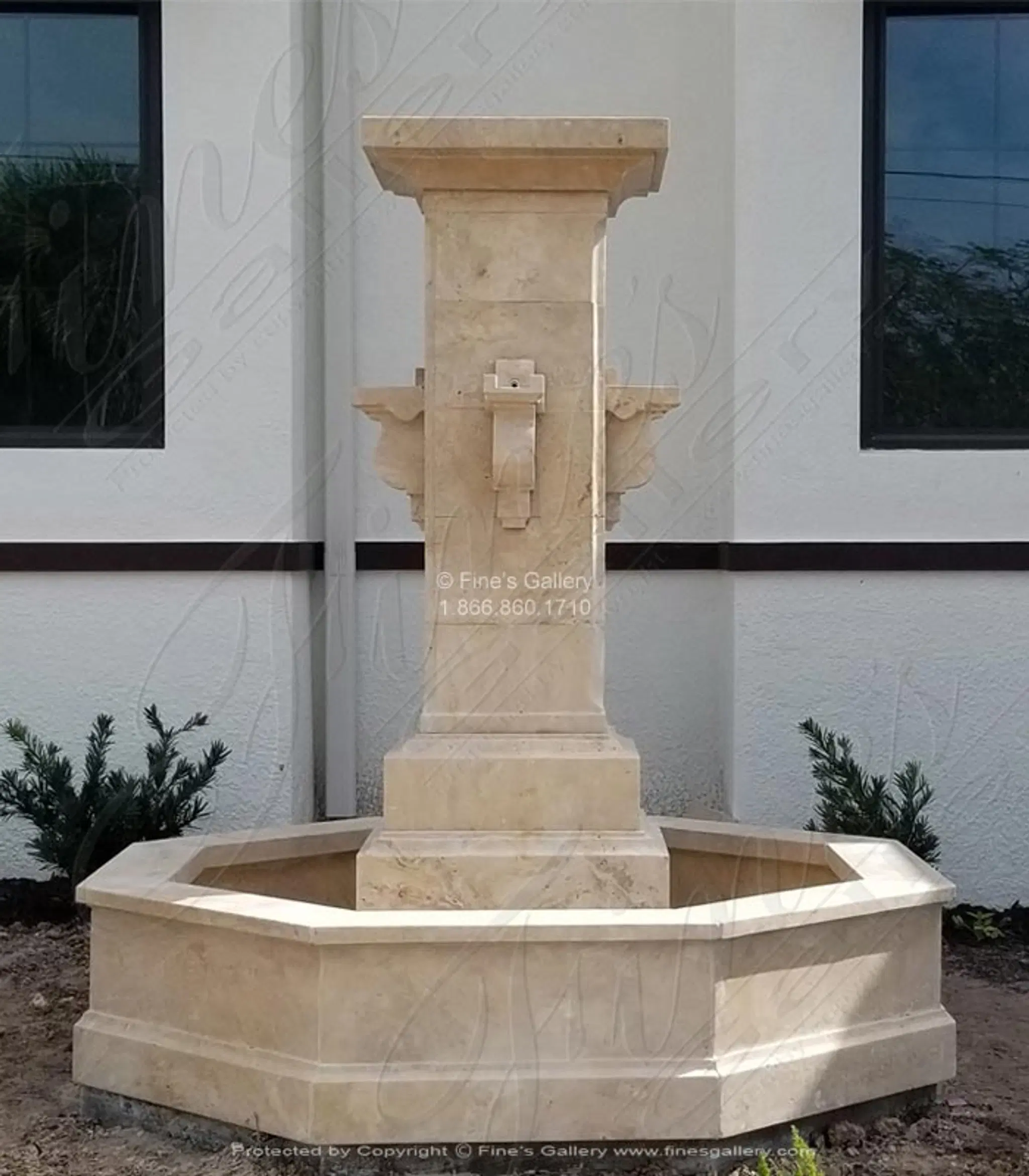 Contemporary Coastal Fountain in Light Travertine. Perfect for your luxury motor court or garden.