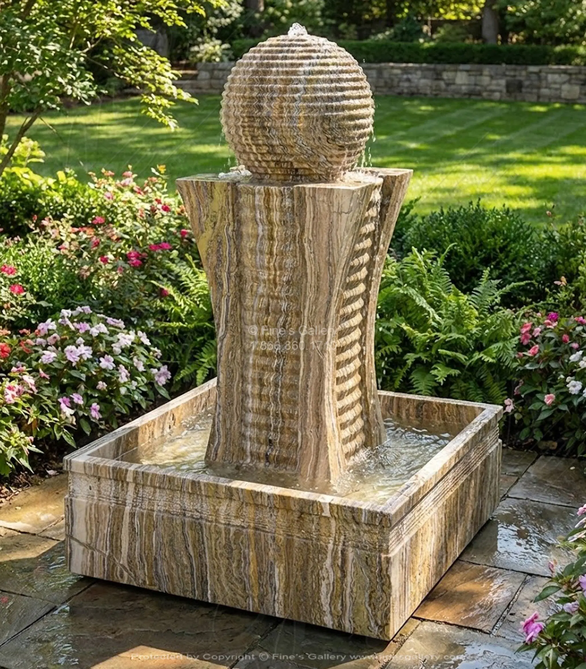 Travertine Onyx Sphere Fountain - Exotic Natural Stone Marble Water Feature for Indoor/Outdoor Gardens - MF-1731
