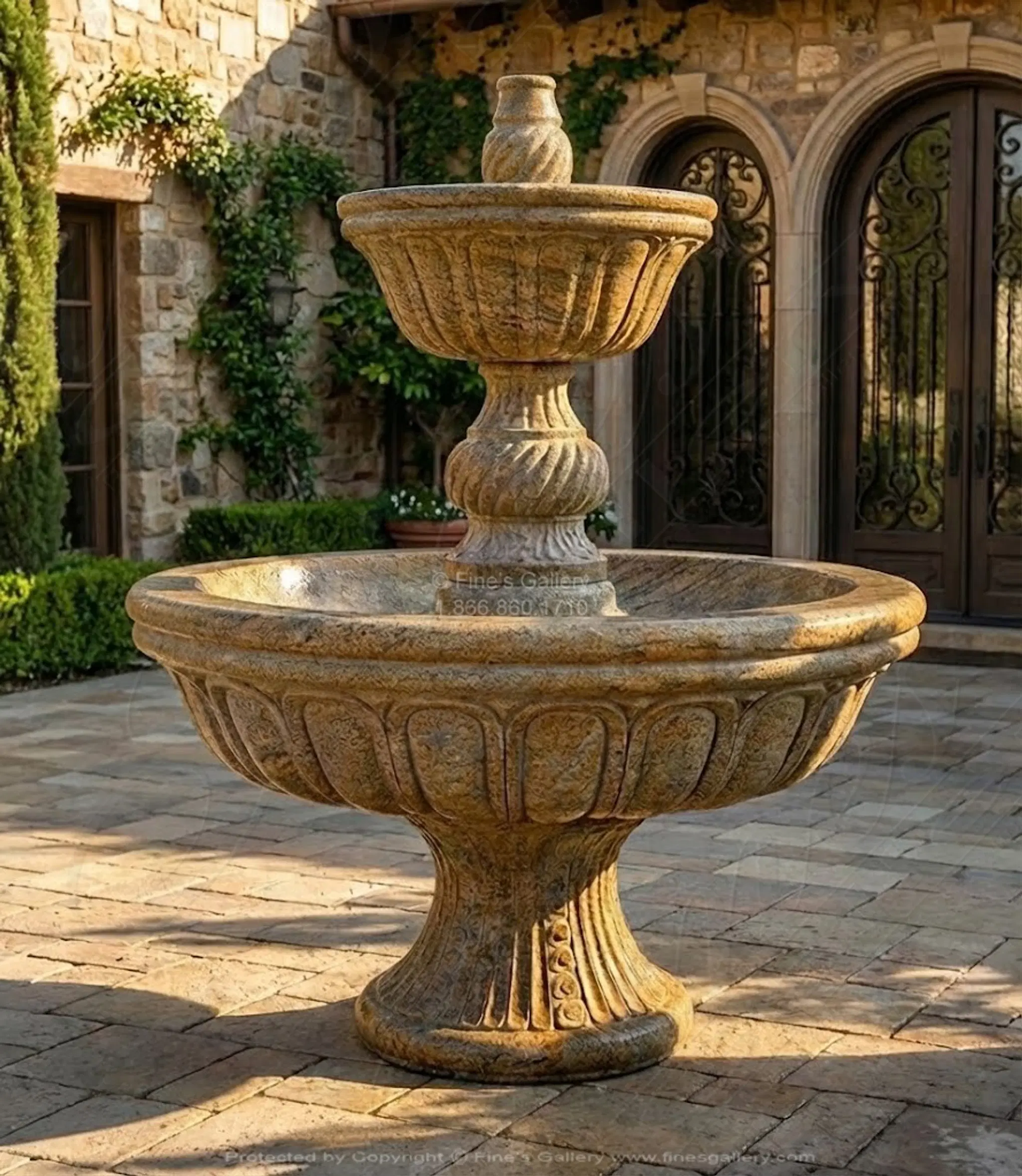 Solid Granite Garden Fountain Self Contained Unit. Carved from a luxurious antique gold granite. Available for delivery nationwide. Visit our US based mega store in South Florida or place your order online today.