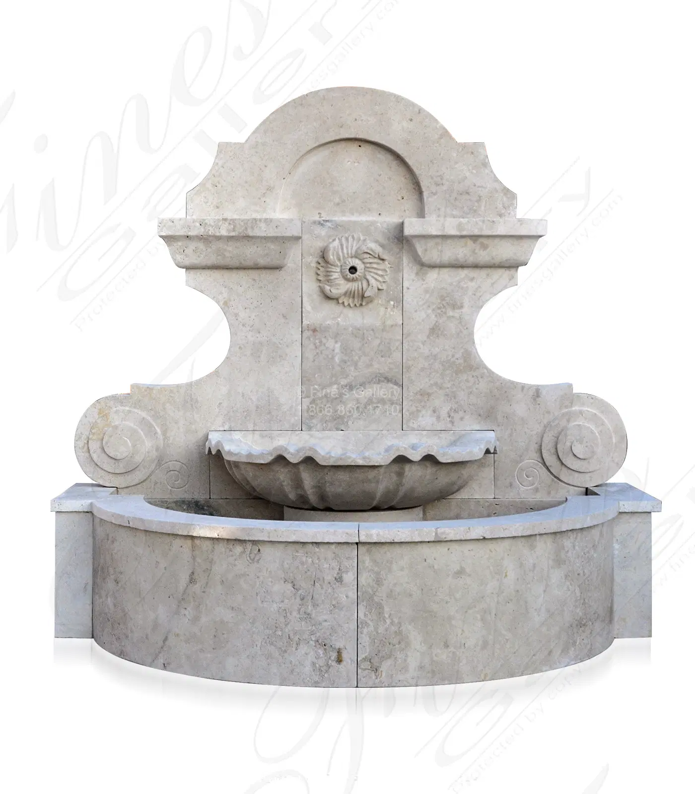 Old World Travertine Wall Fountain Featuring sleek old world design. Hand carved from natural travertine. Available in an array of aged natural stone options including italian and french origins.