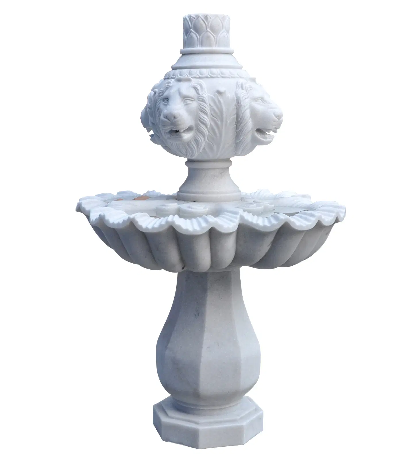 Lion Head Themed Fountain in a White Marble - MF-2051