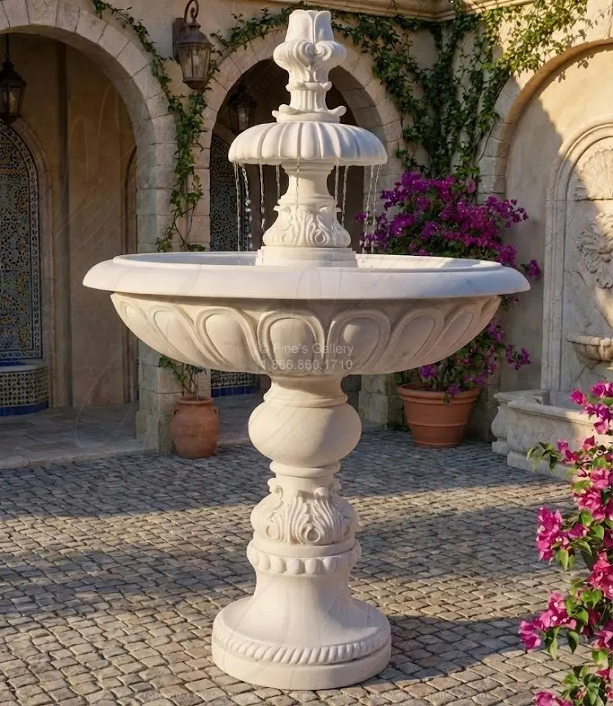 Fleur De Lis Theme Fountain in Statuary Marble - MF-2105