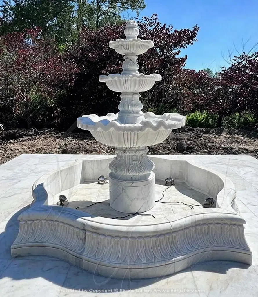 Elaborate Fountain and Matching Pool Basin in Elegant White Marble - MF-2129