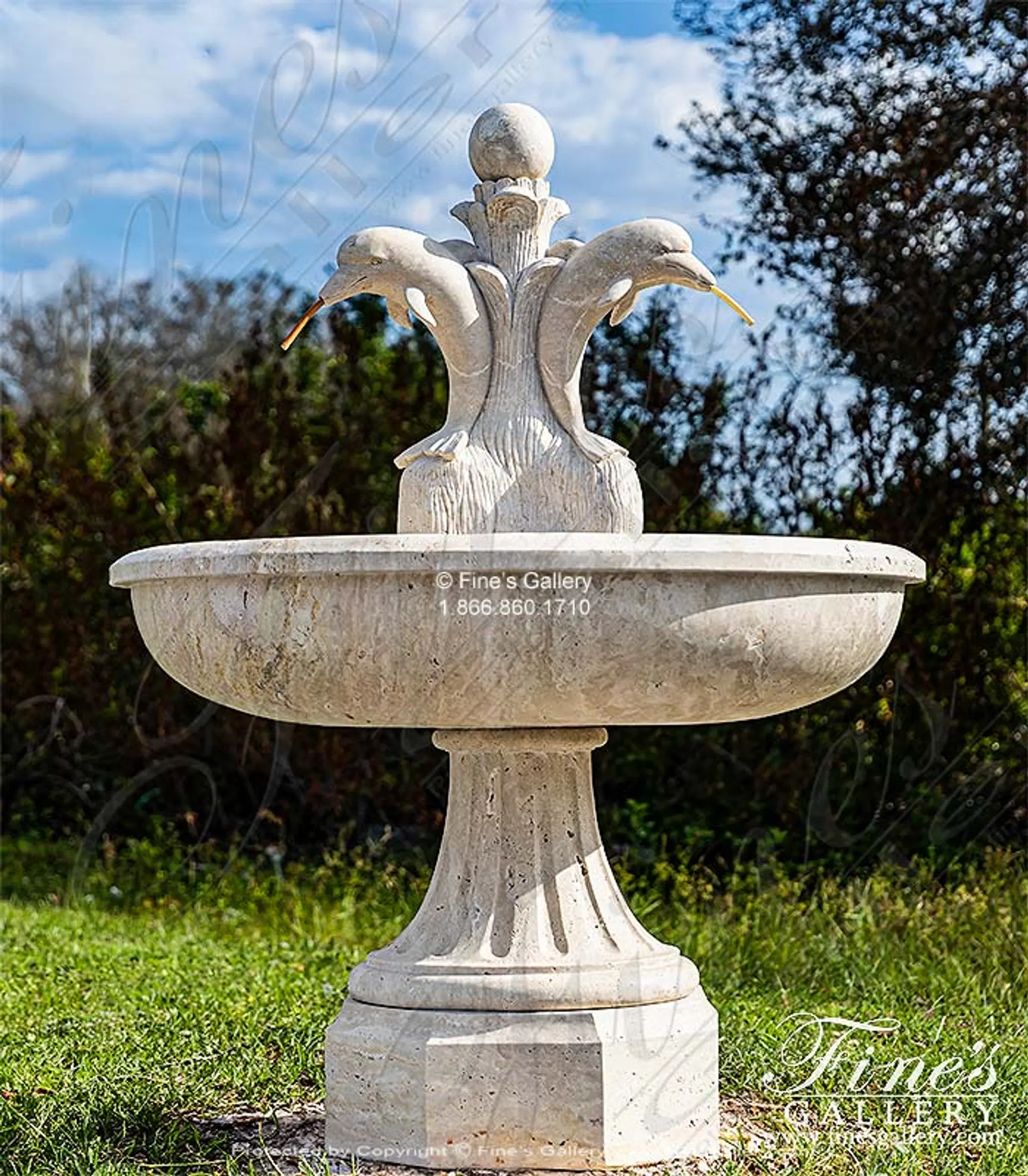 Dolphin Themed Fountain in Hand Carved Light Travertine - MF-2192 (View 2)