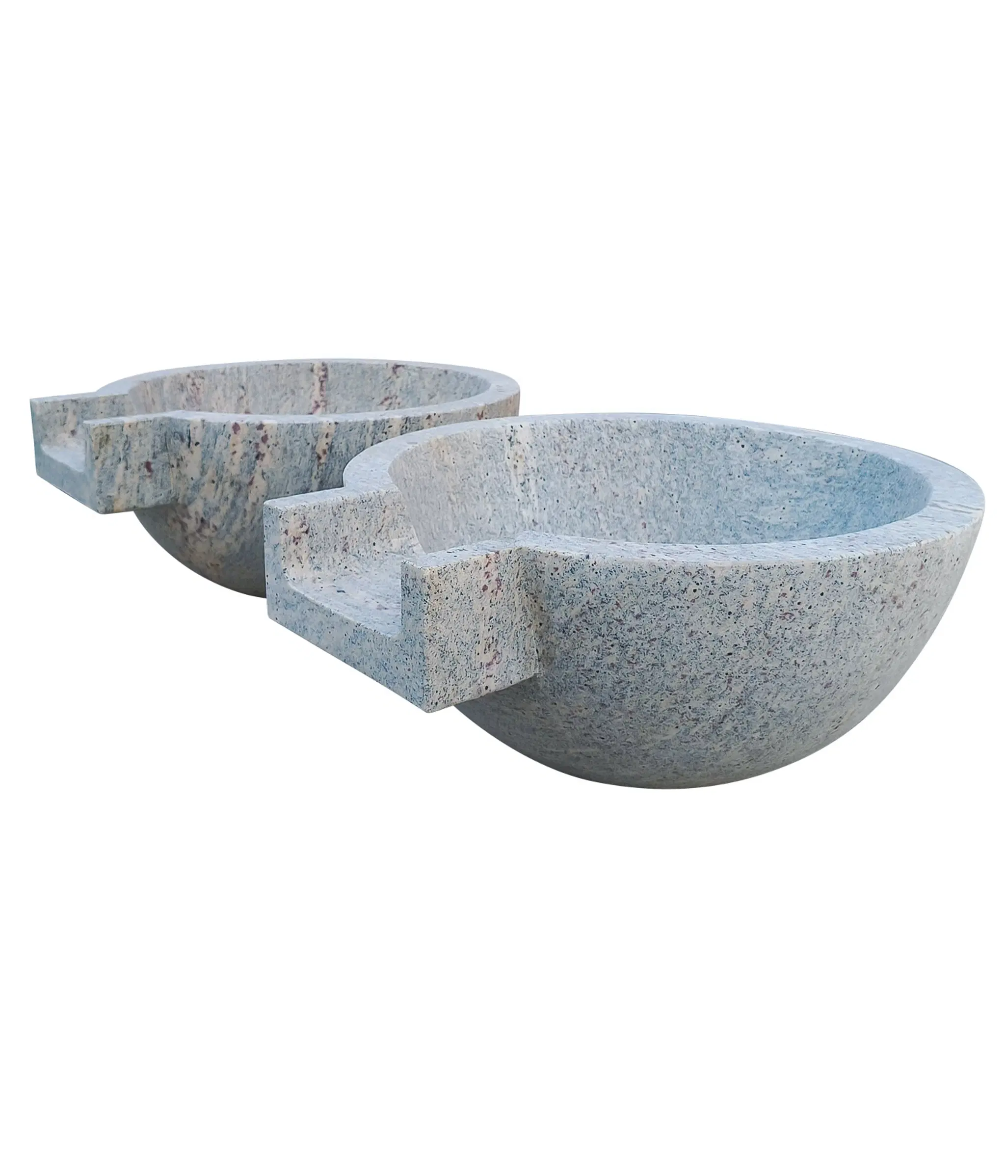 Contemporary Classic Granite Fountains ( Swimming Pool Application ). Carved from solid blocks of Antique Griggio Granite, these outstanding quality water features are sure to be the talk of your pool party. Priced as a pair!