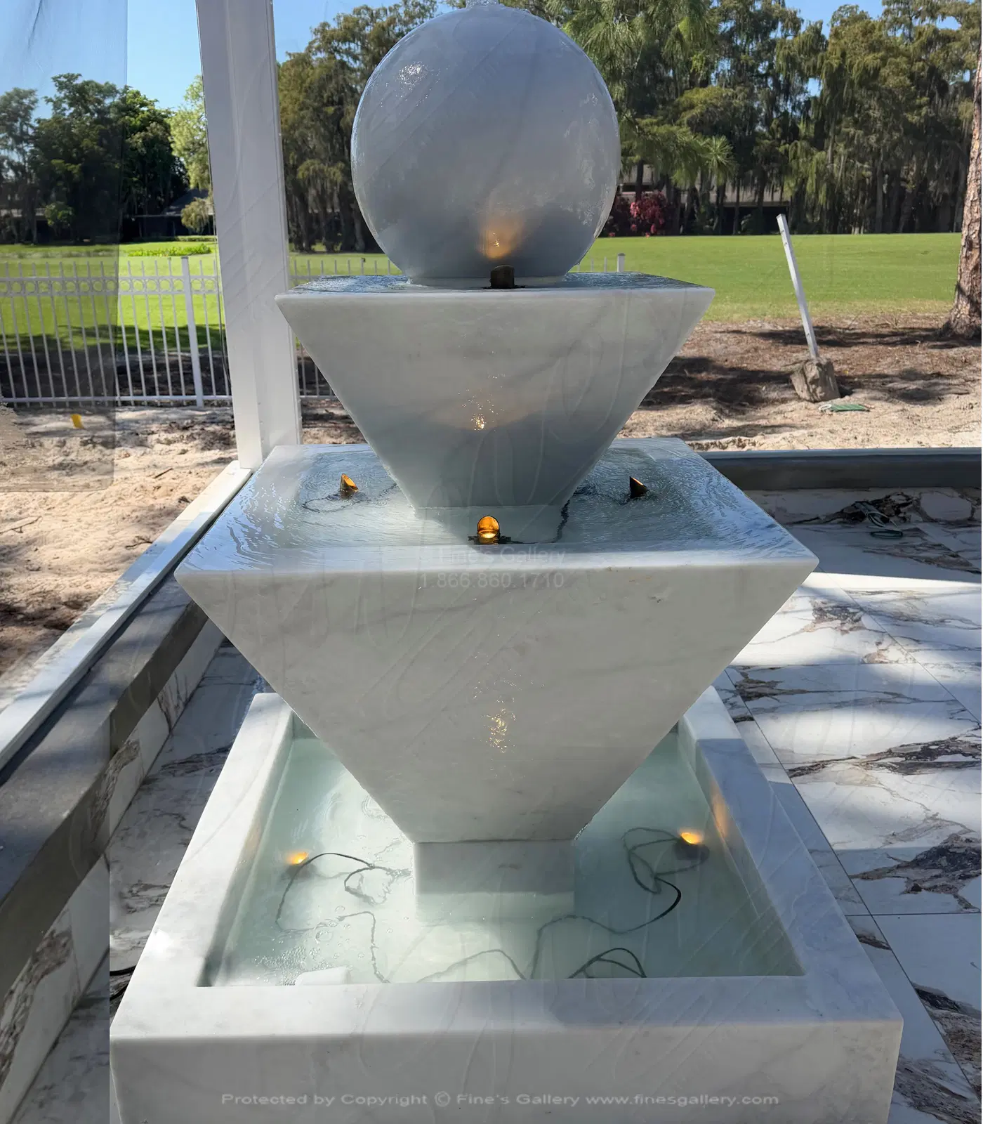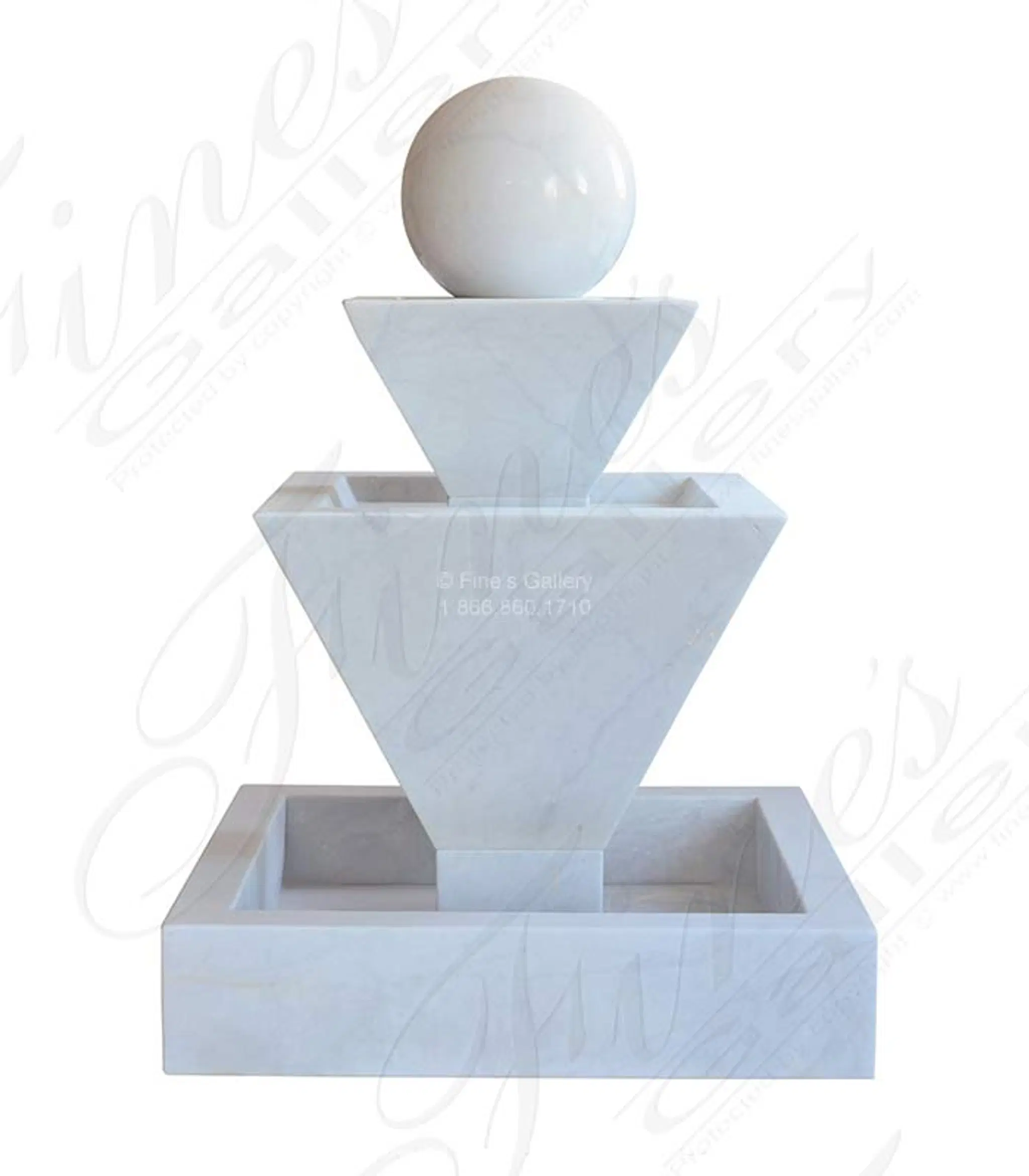 Classic Contemporary Fountain in White Marble. Nothing says luxury like a marble fountain. Fines Gallery has brought the finest marble from all over the world to the US for decades. Contact a sales rep today. 239.277.0009