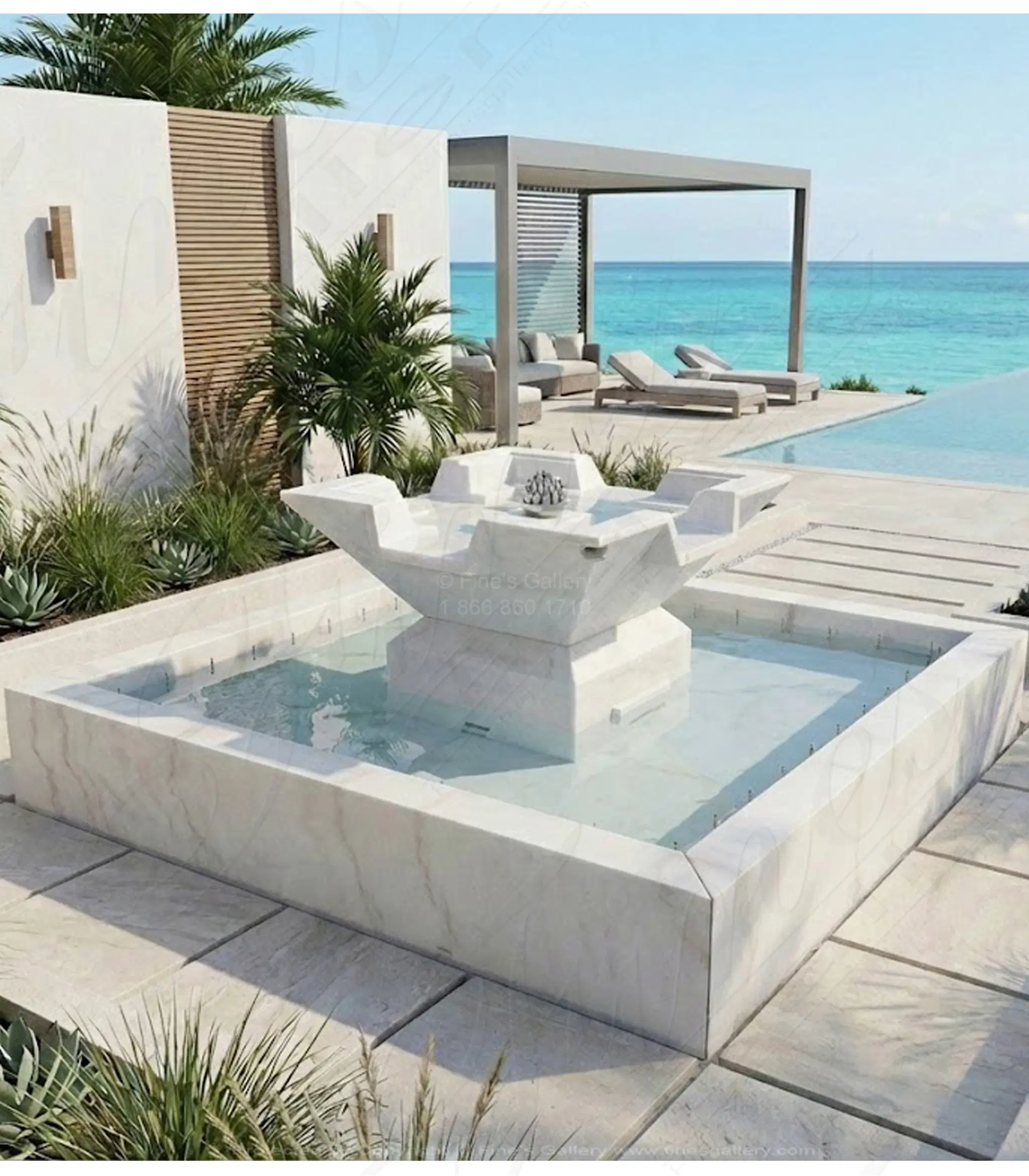Contemporary Coastal Fountain in Statuary Marble - MF-2432