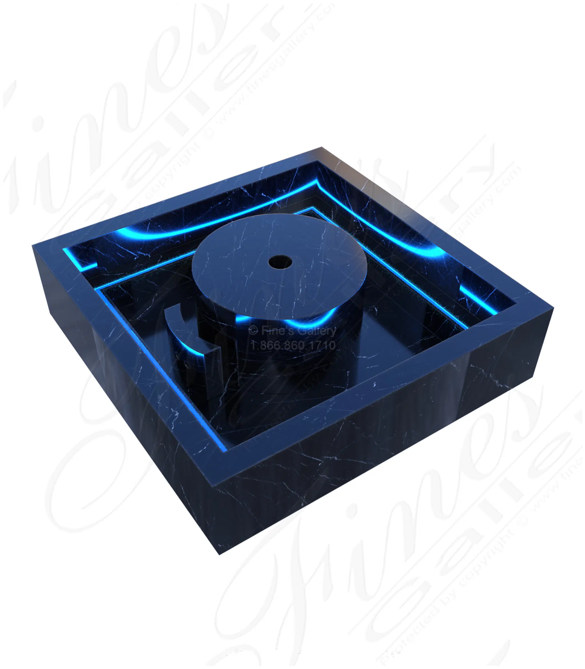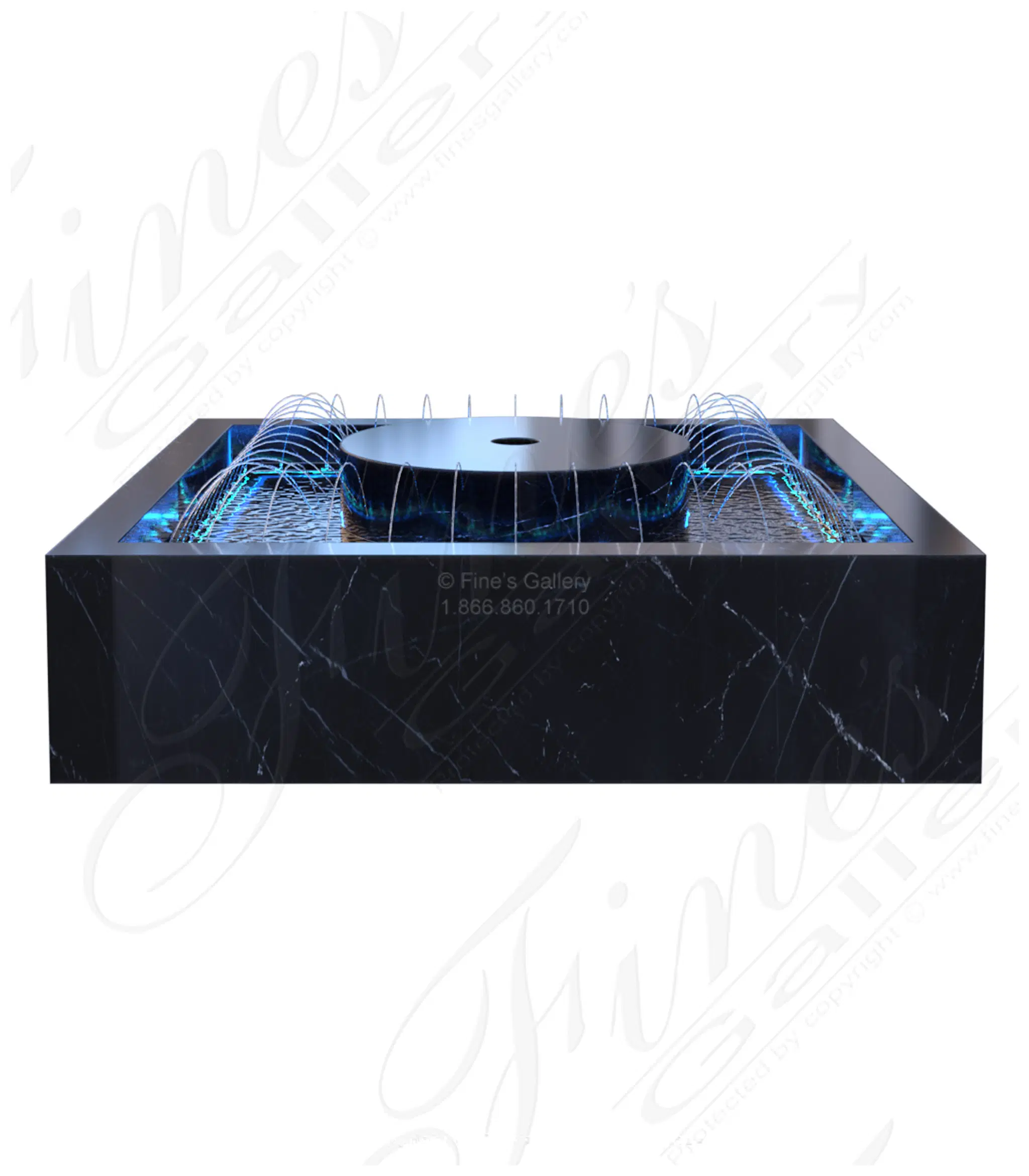 Elegant Nero Marquina Marble Square Catch Basin with Stainless Steel Spray Ring. Place your favorite marble, bronze or stainless art or fountain.