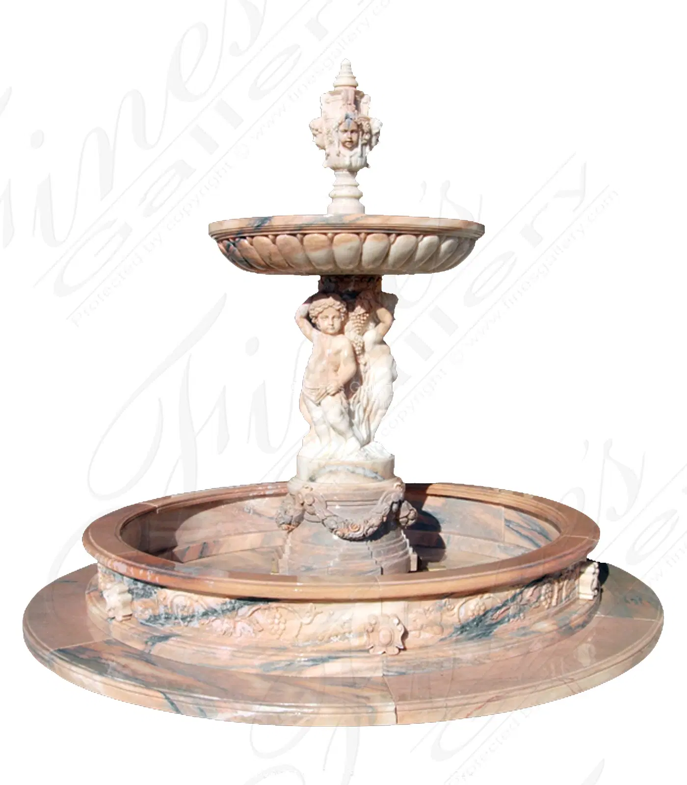 A magnificent marble fountain decorated with beautiful cherubs to enjoy in the luxury of your own home and yard. A round pool squirts lavish streams of water into the center, where child figurines support a large basin. Made from our Rosetta marble.