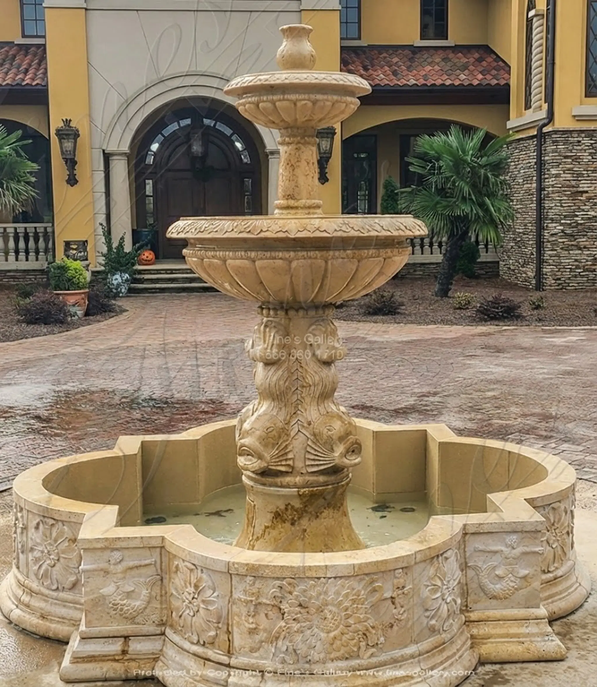 Old World Italian Style Fountain in Gold Travertine - MF-769