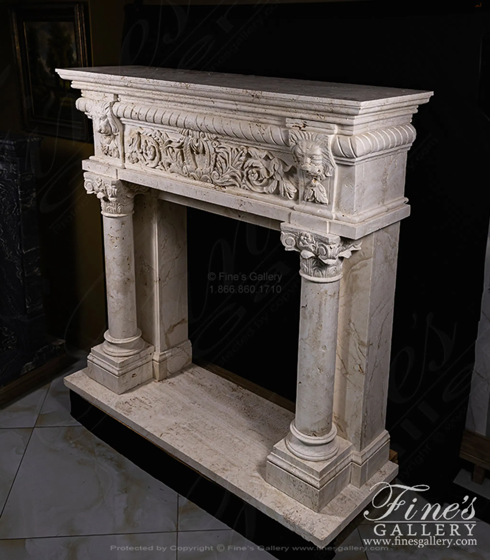 Lions Den Fireplace Mantel in Ivory Travertine