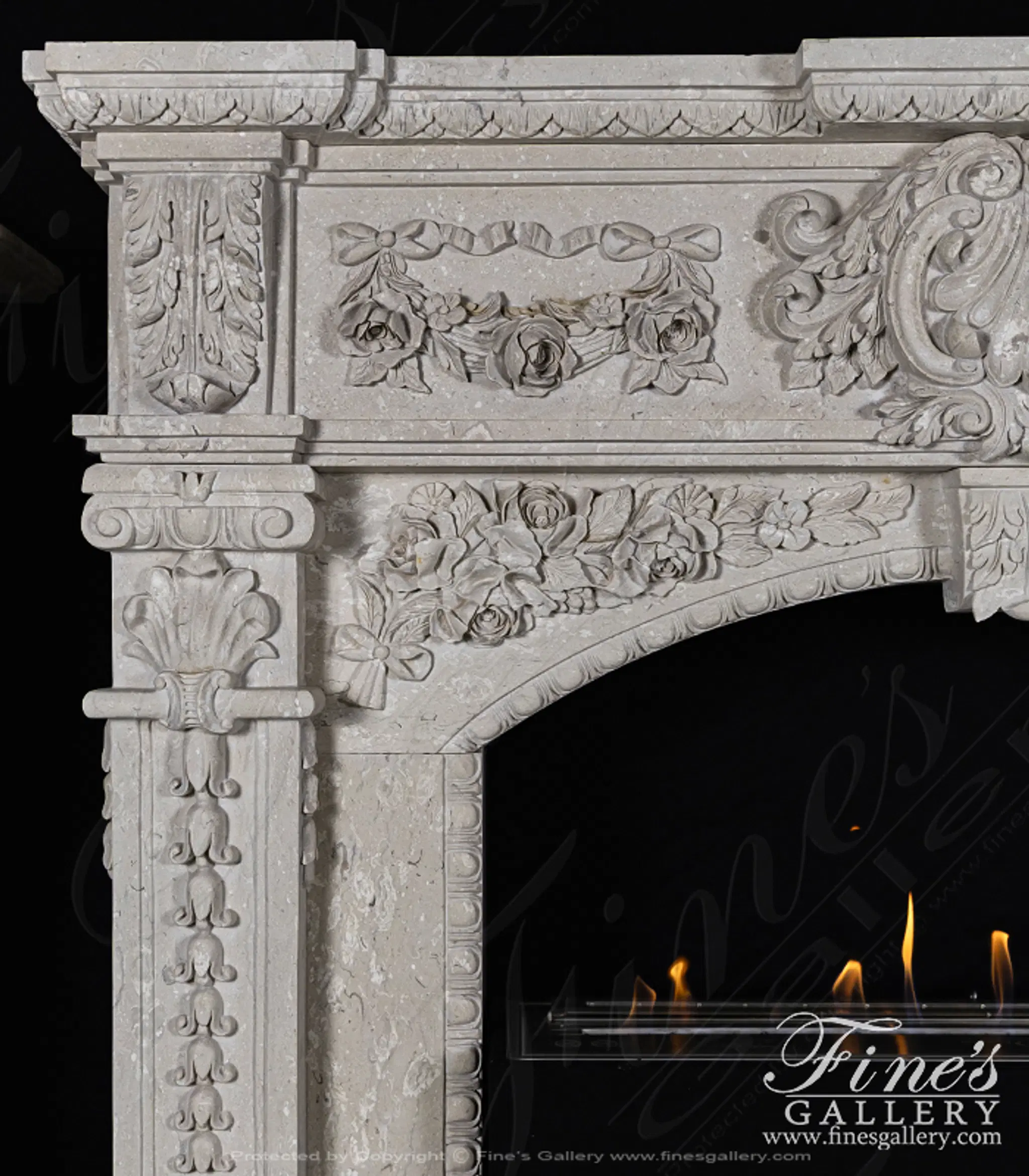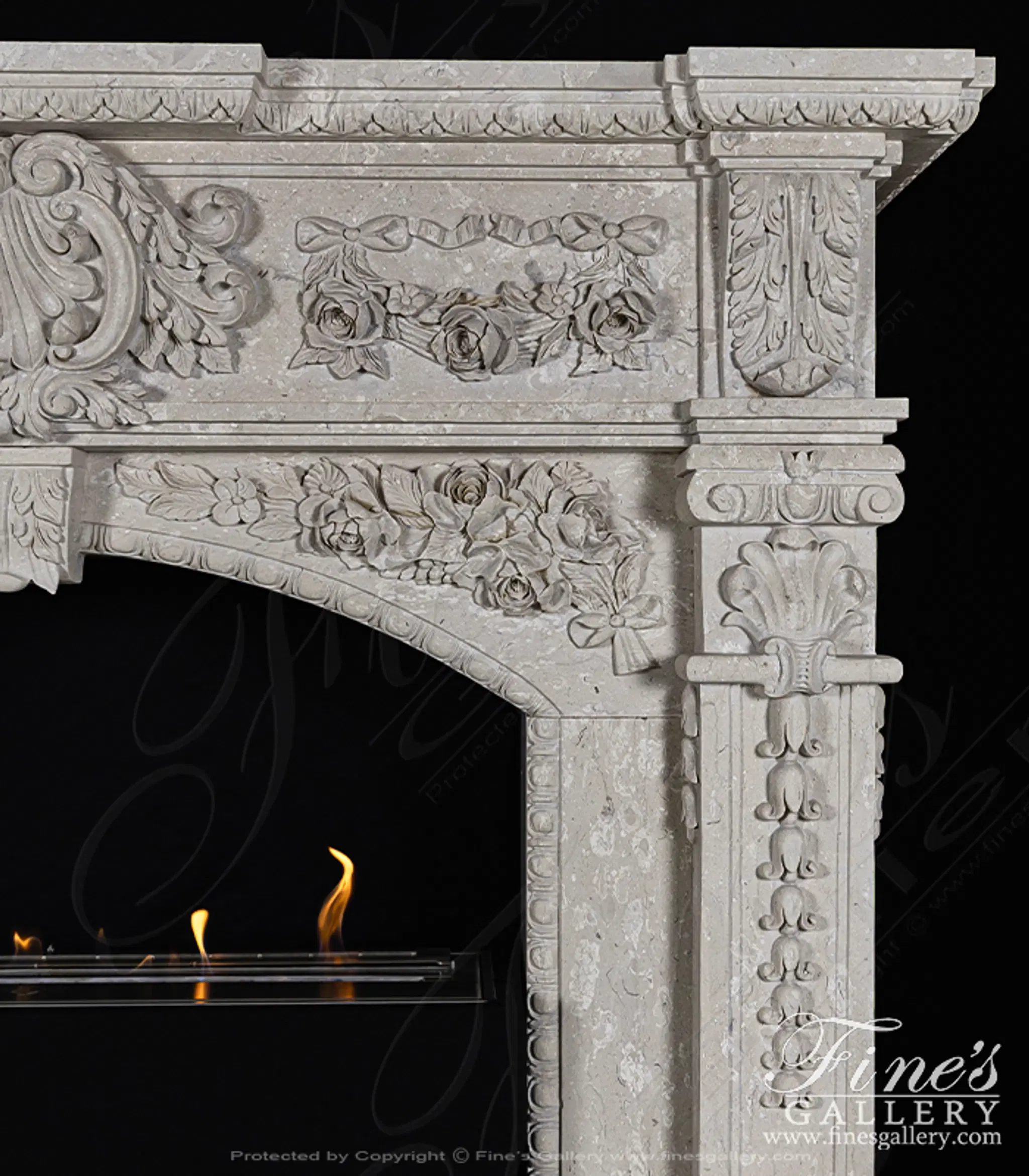 Lavish Floral Garland Italian Perlato Marble Fireplace Mantel - MFP-2262 (View 4)