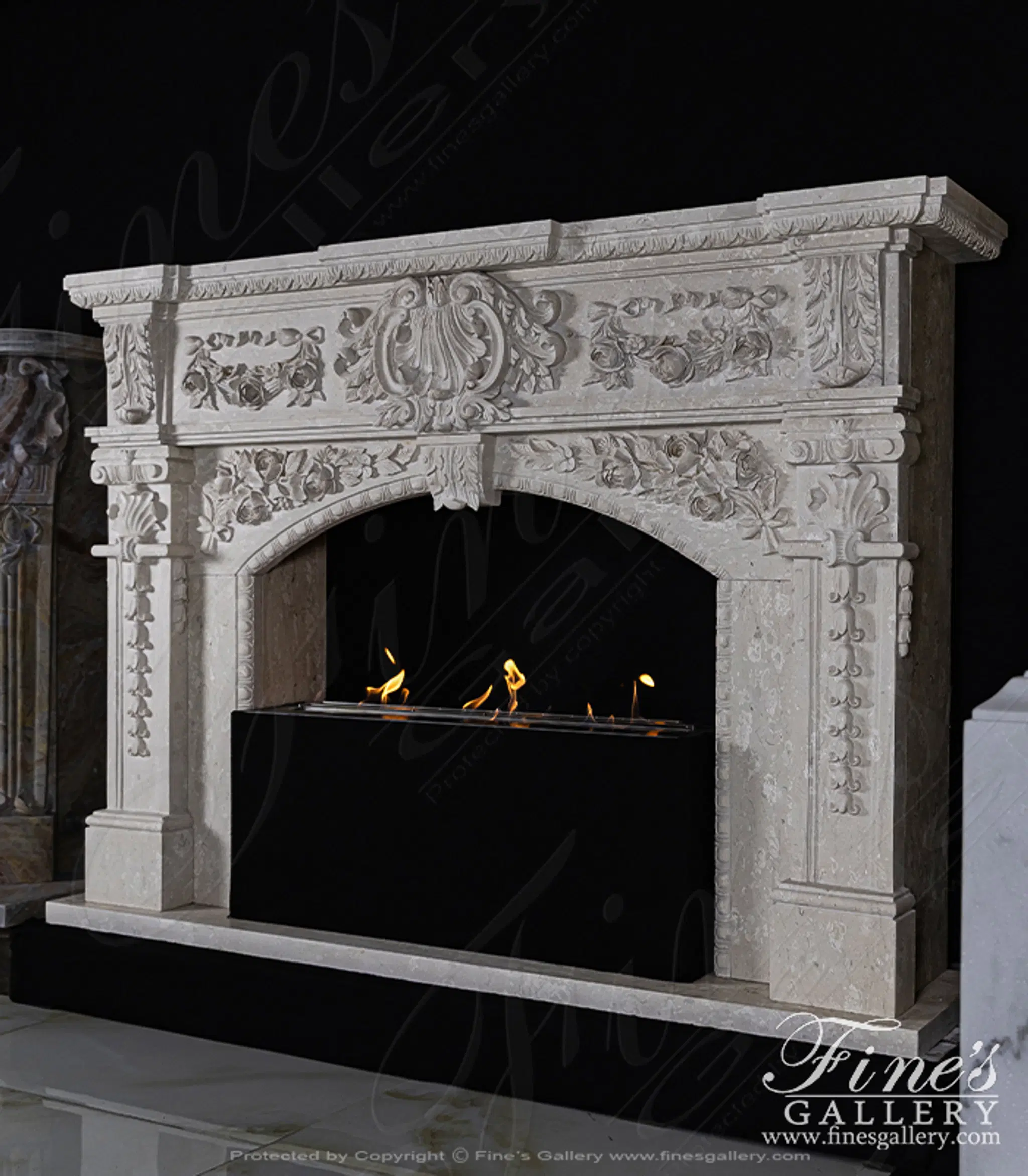 Lavish Floral Garland Italian Perlato Marble Fireplace Mantel - MFP-2262 (View 2)