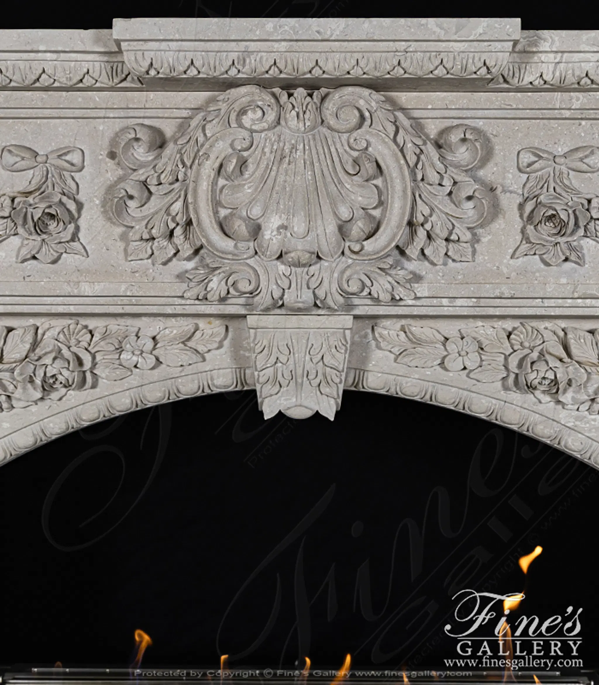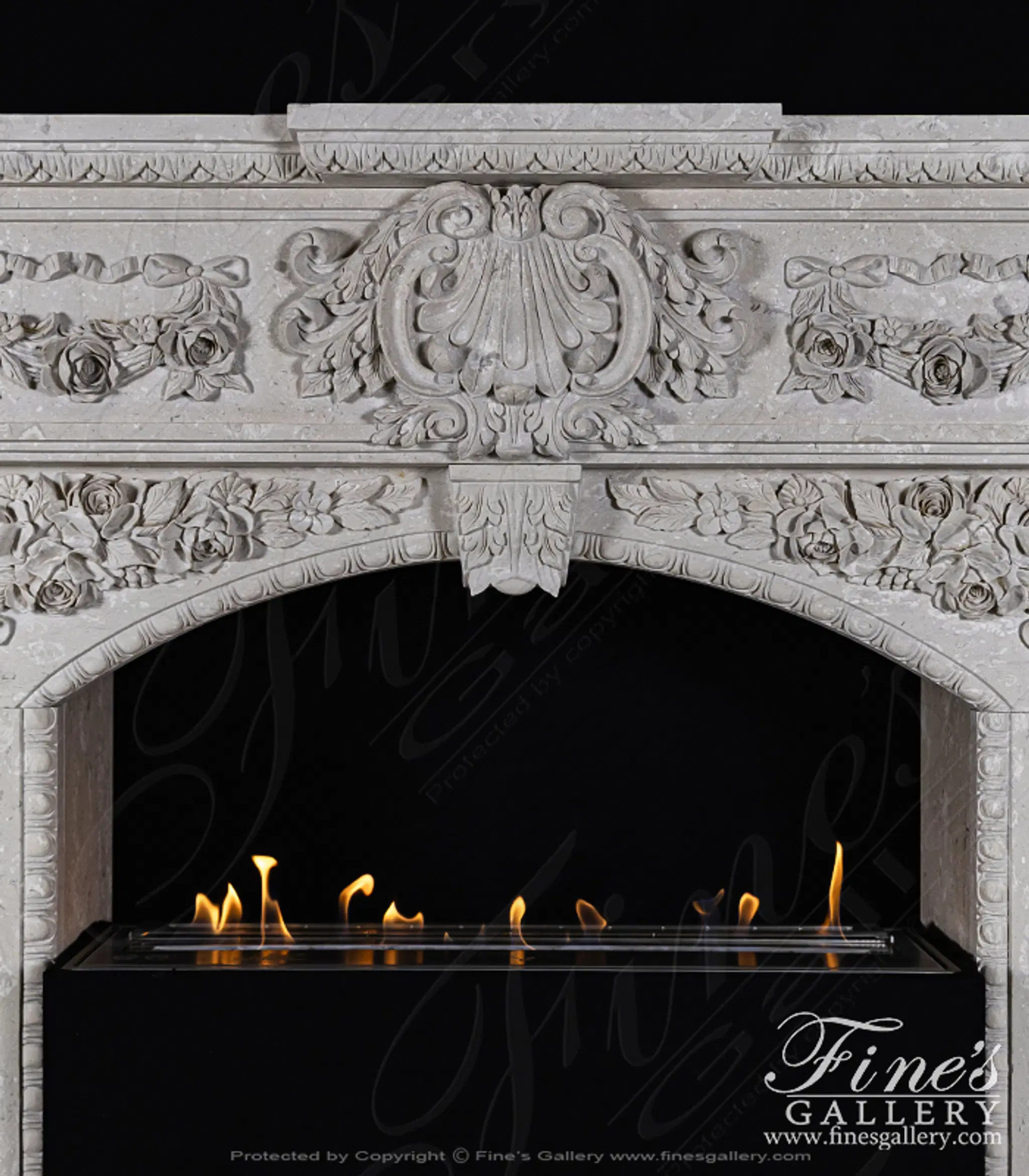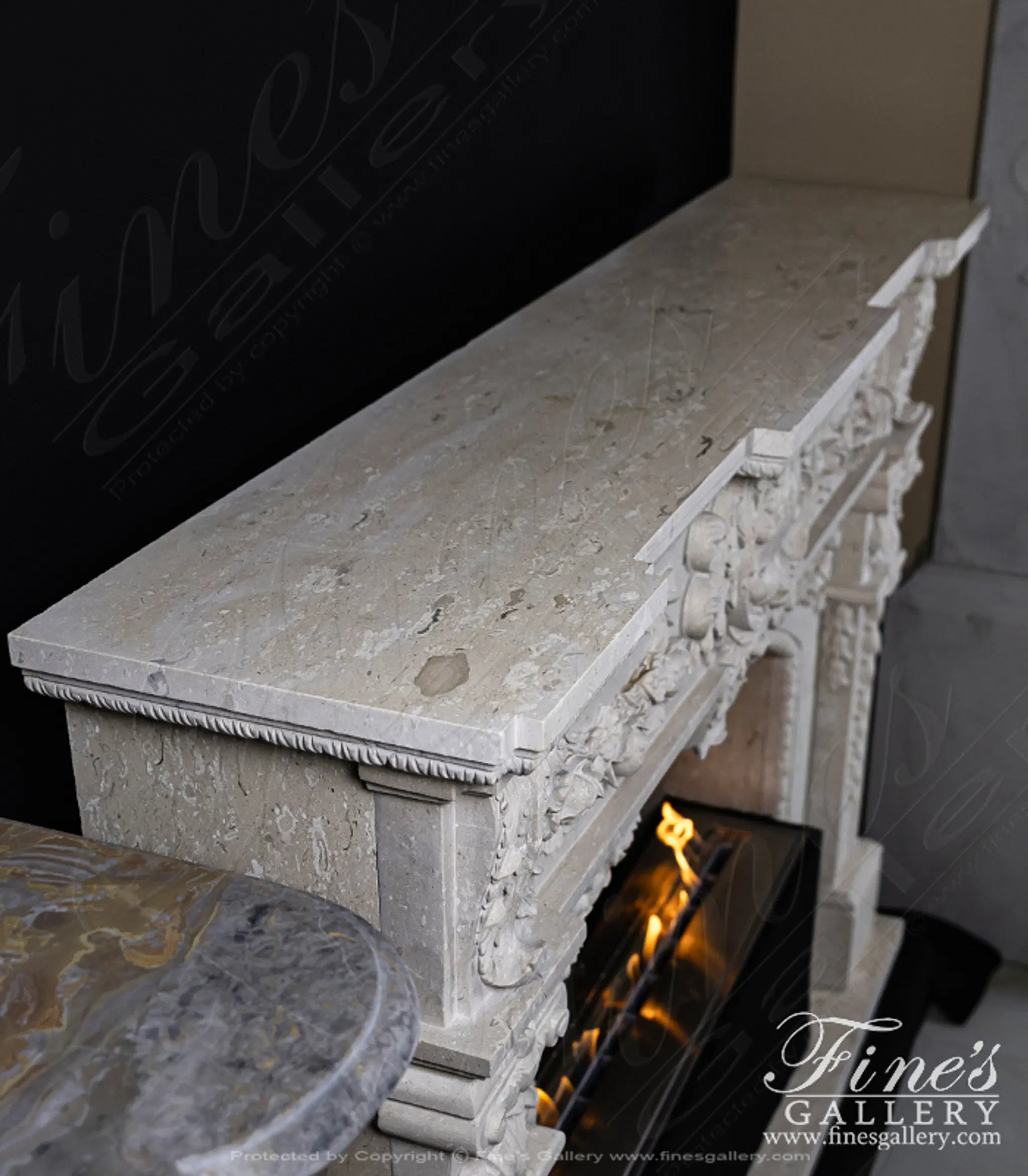 Lavish Floral Garland Italian Perlato Marble Fireplace Mantel