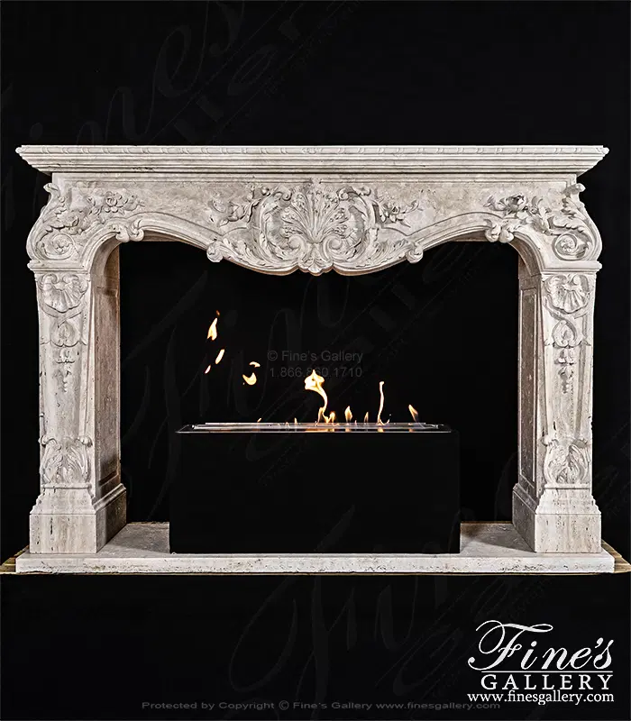 Rare Ornately Carved Mantel in Italian Roman Travertine - MFP-2583
