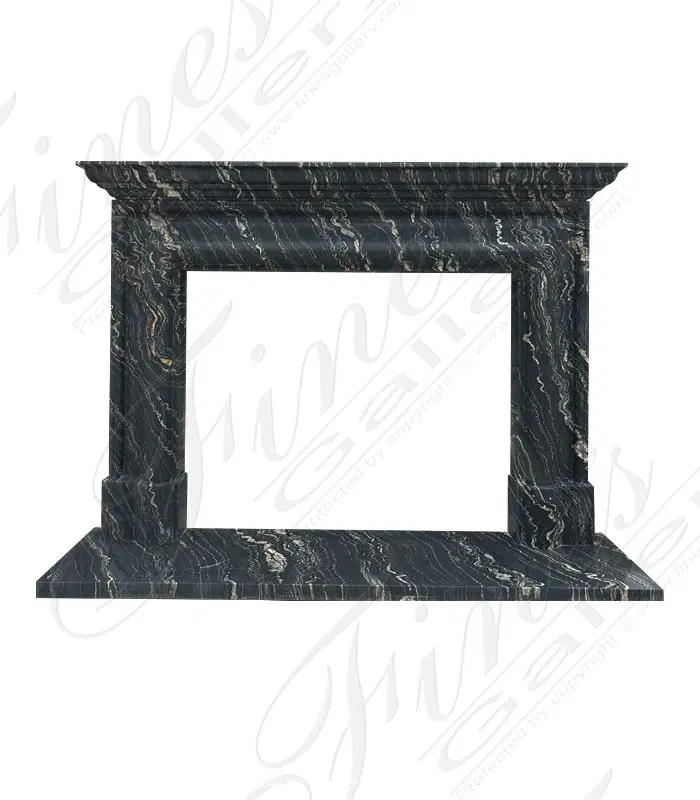 An Exotic Tropical Storm Quartzite Bolection Style Mantel. Features an 8 1/2 Inch Deep Shelf.