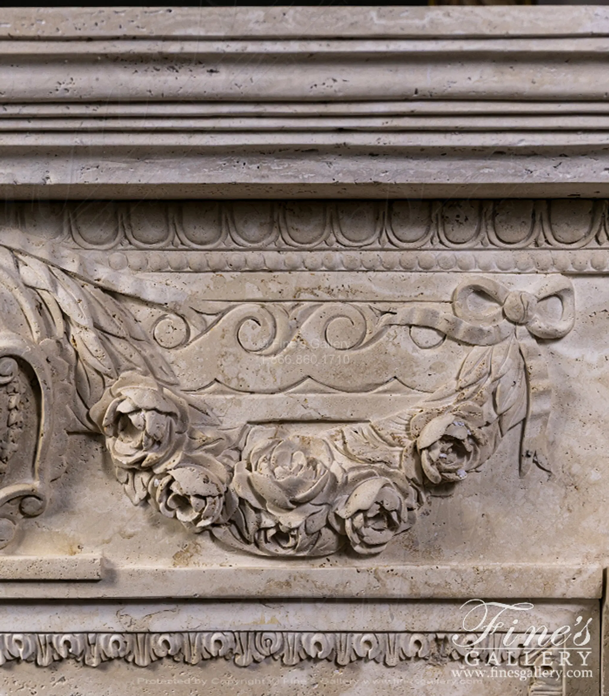 Oversized Figural Maidens with Rose Garlands Mantel in Italian Ivory Travertine - MFP-2695 (View 10)