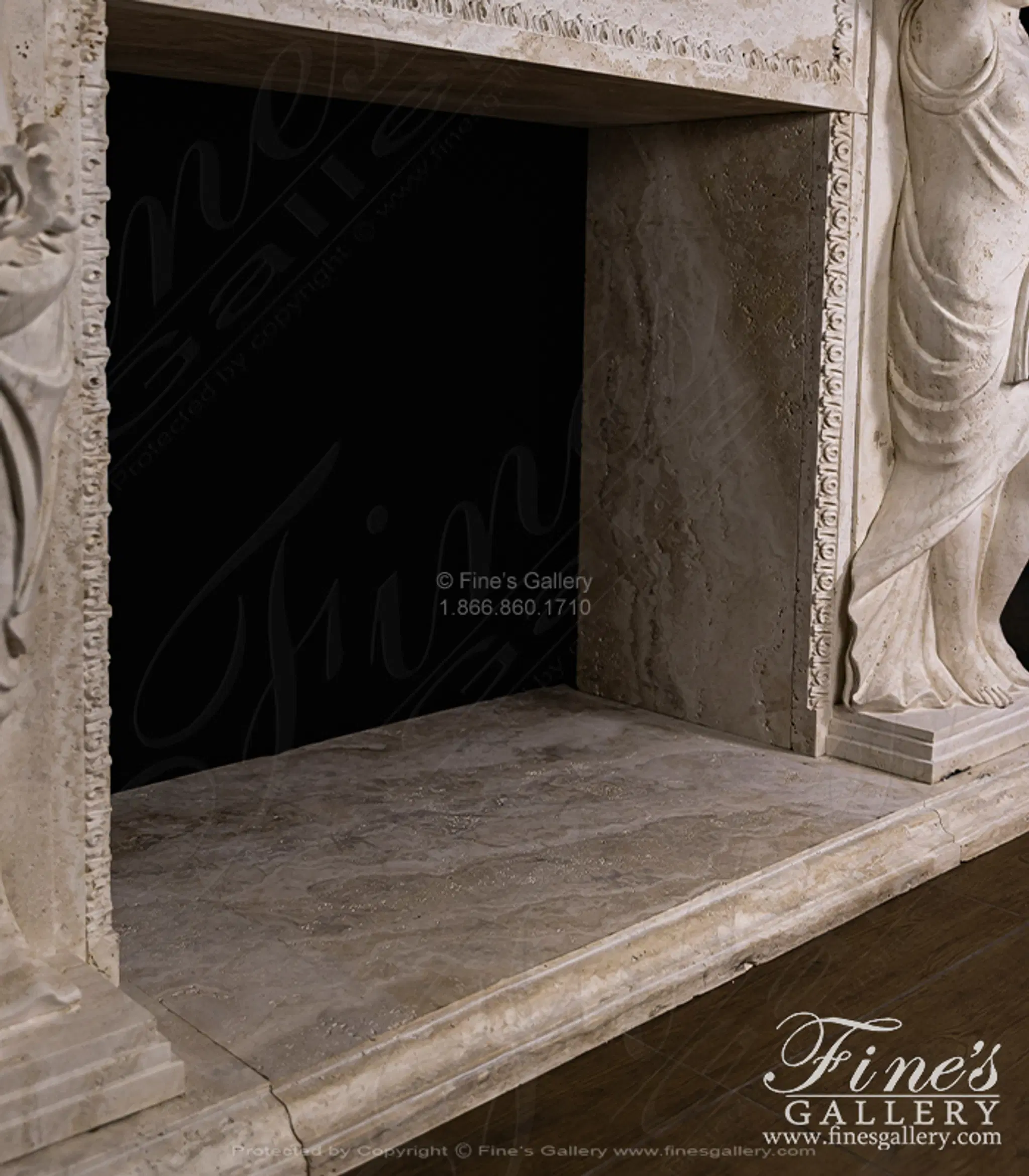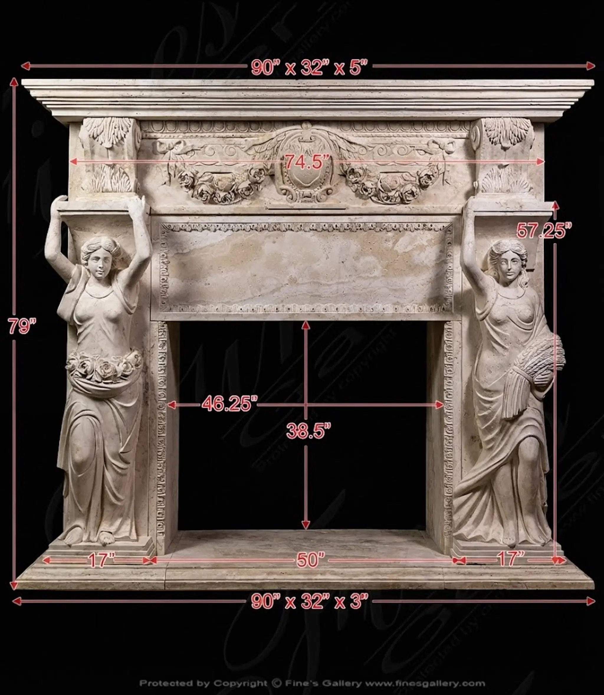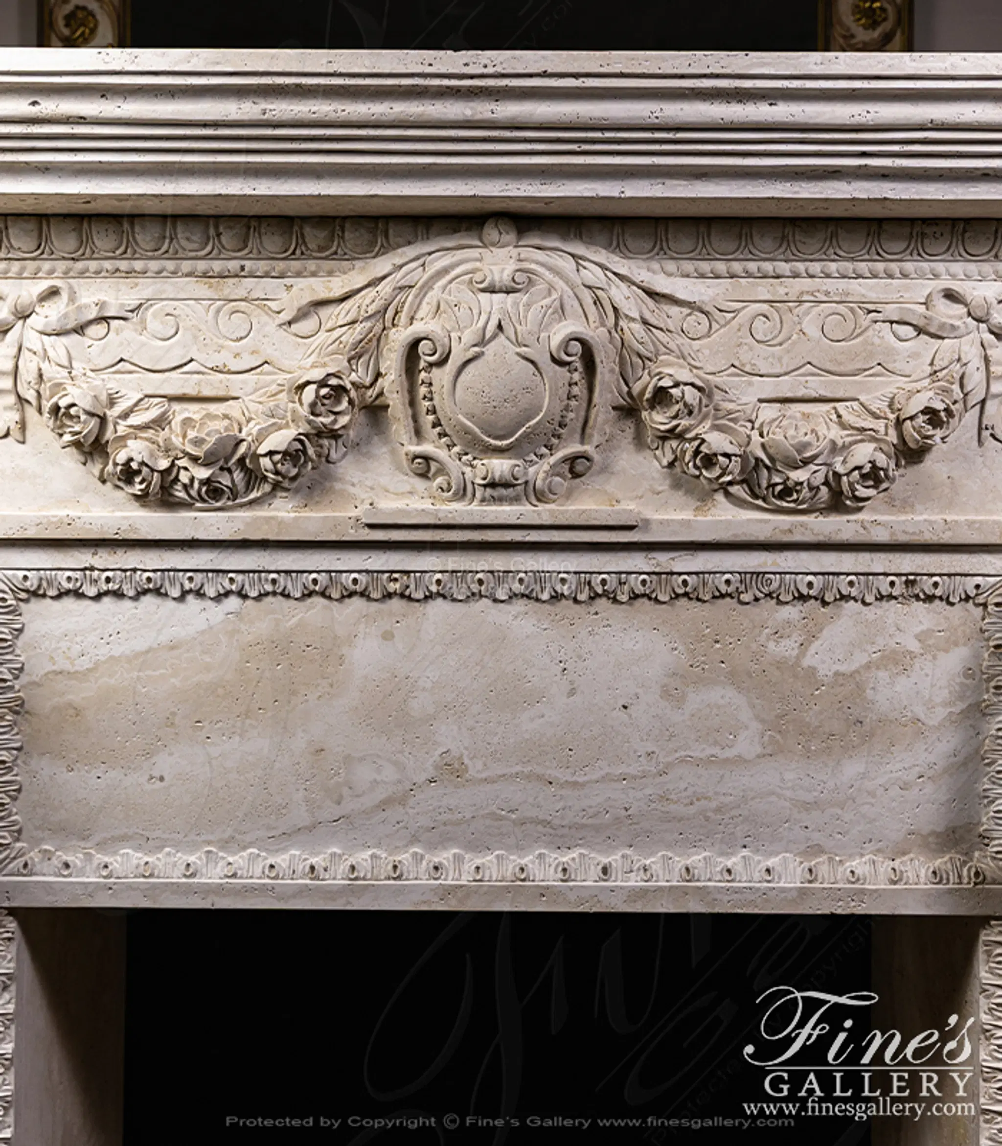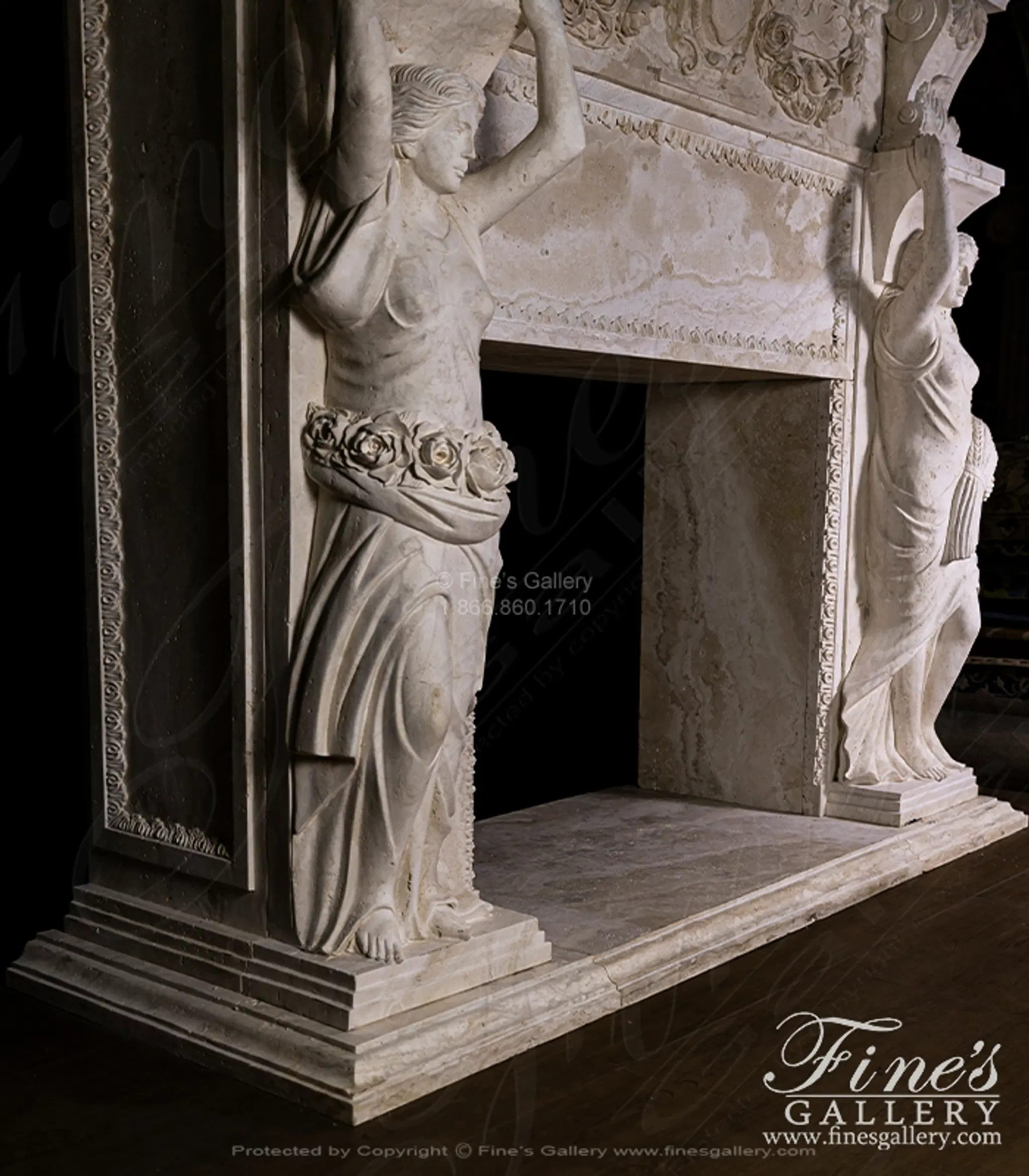 Oversized Figural Maidens with Rose Garlands Mantel in Italian Ivory Travertine - MFP-2695