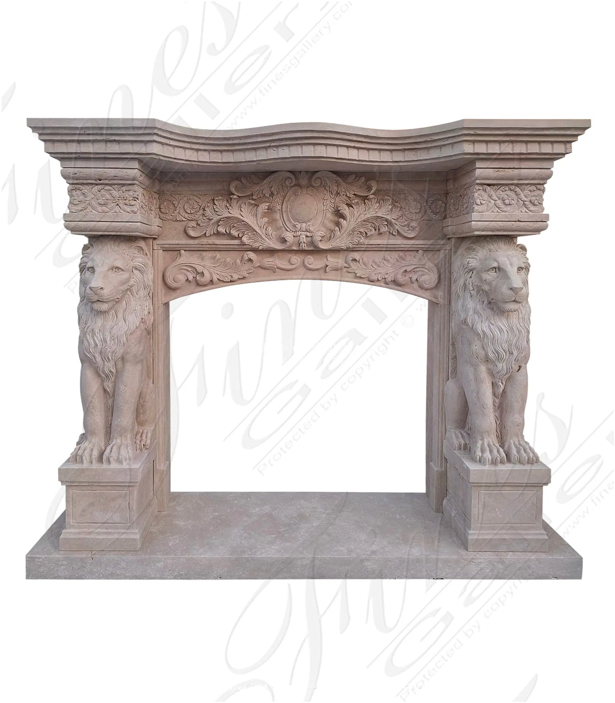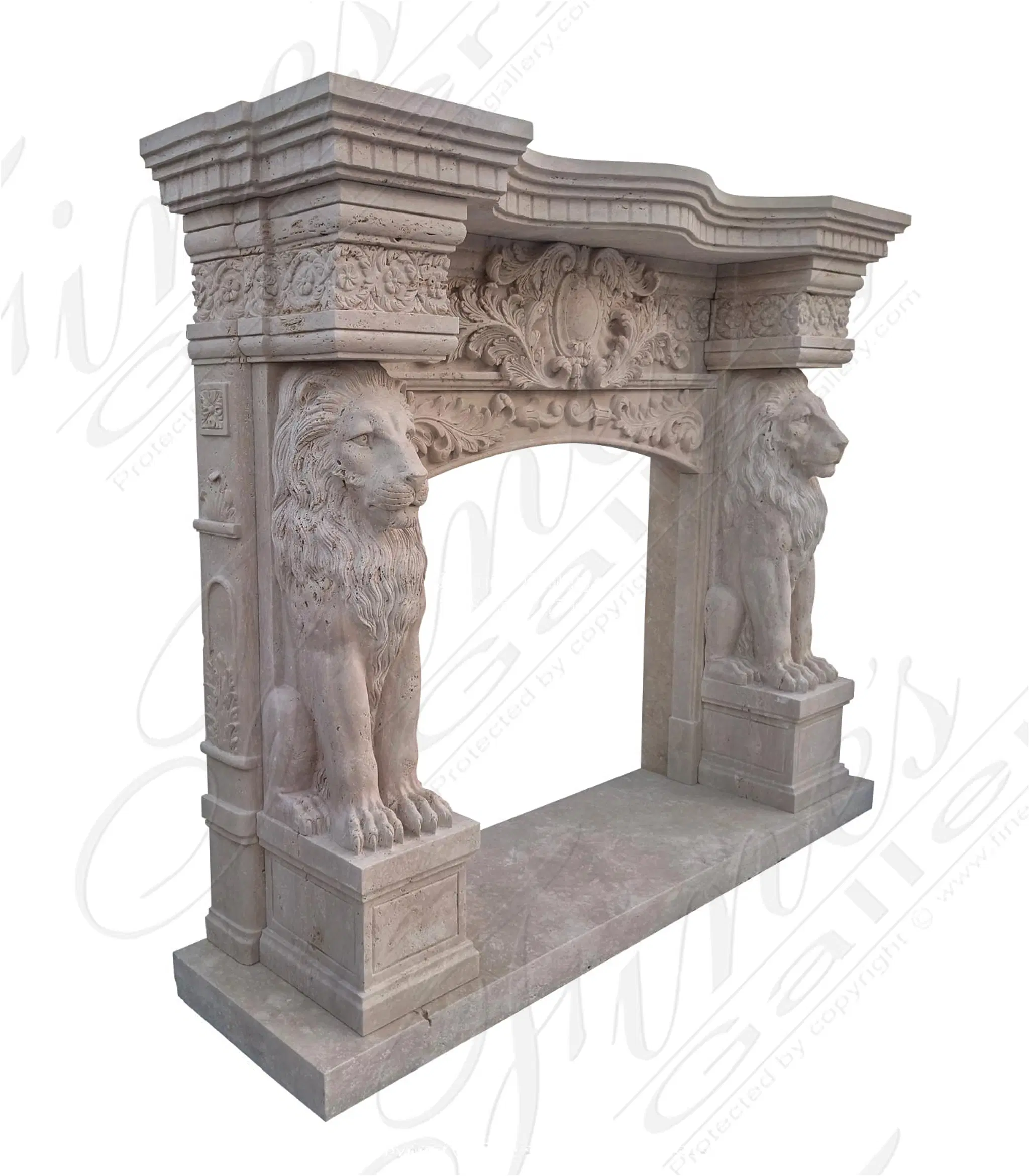Exquisite Lion Themed Mantel in Italian Roman Travertine - MFP-2707