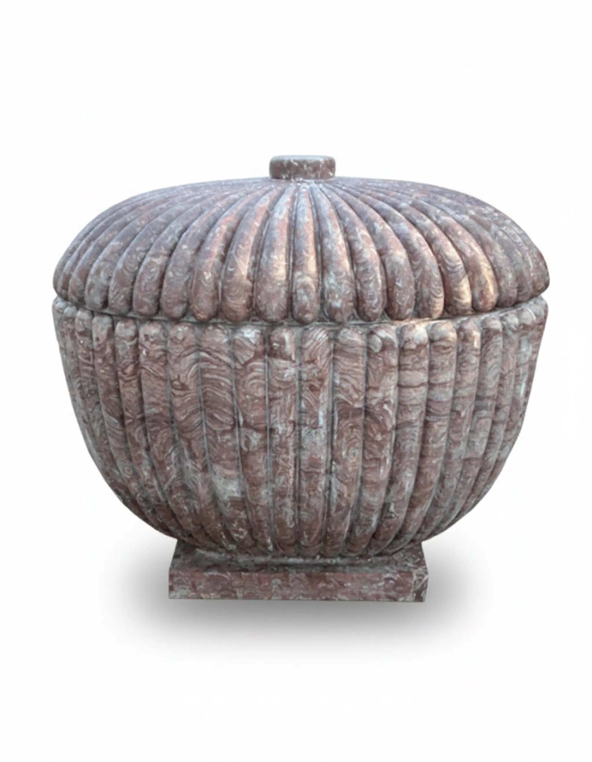 Contemporary Pink and Gray Marble Urn with Lid - Decorative Hand Carved Planter