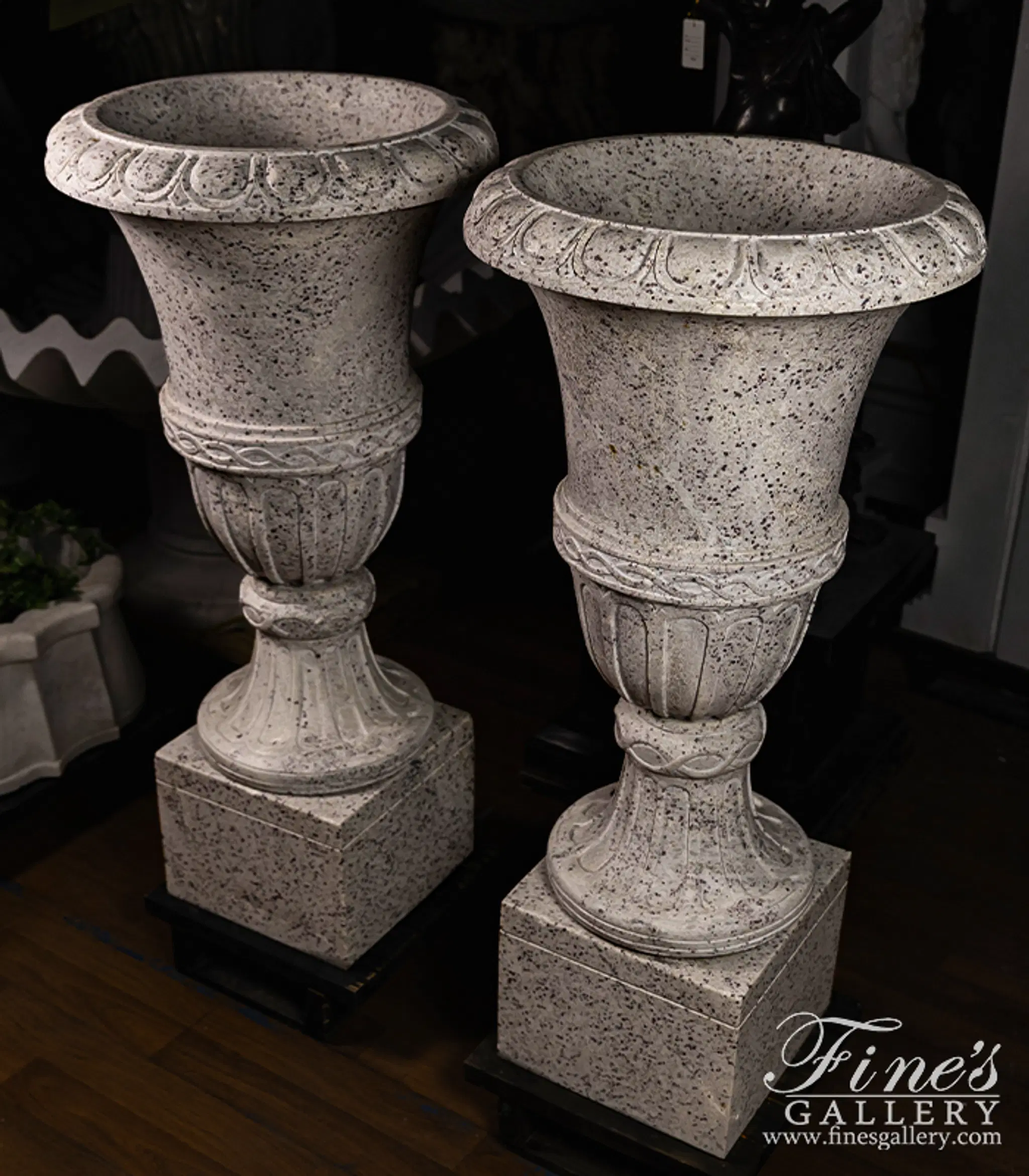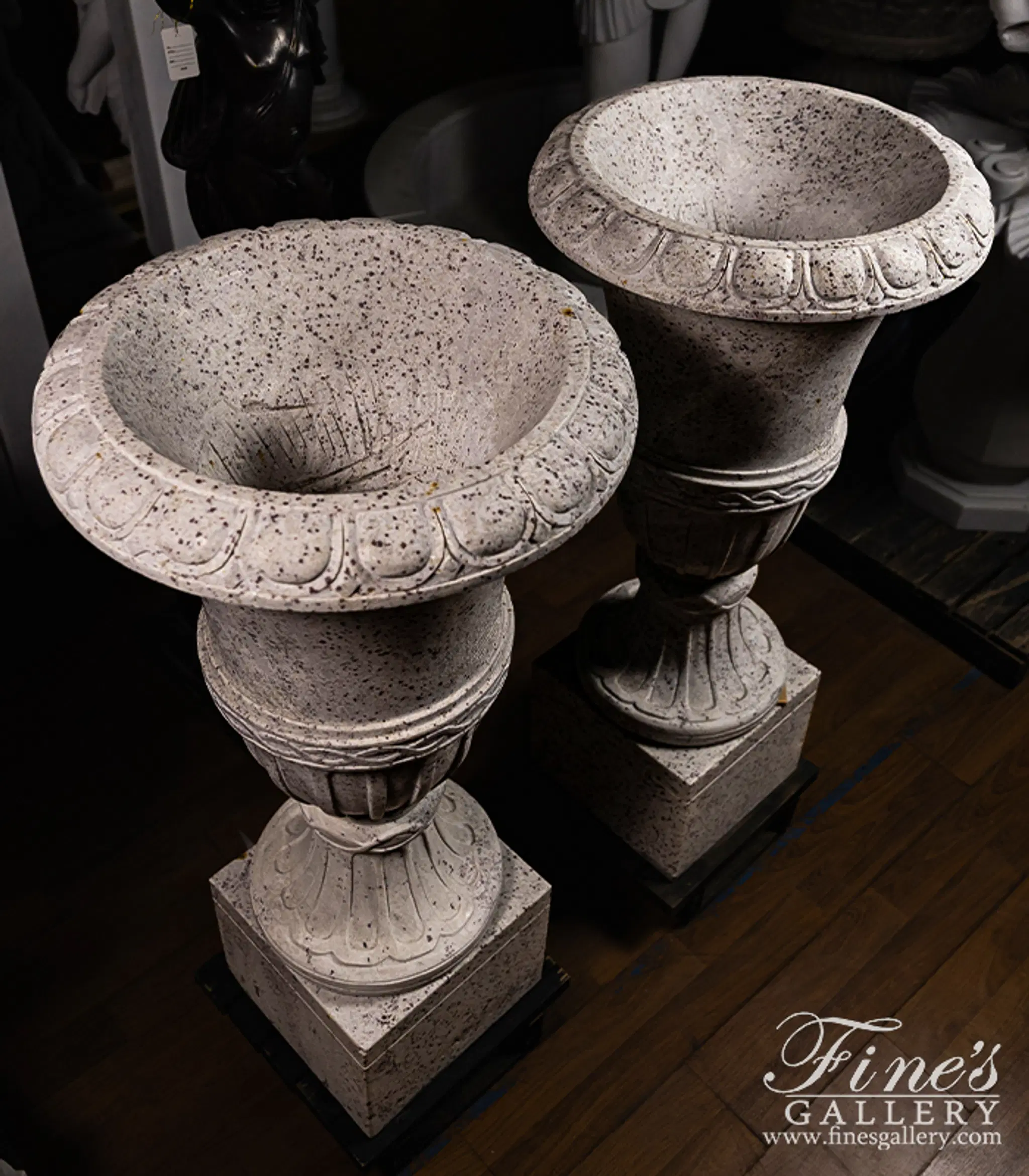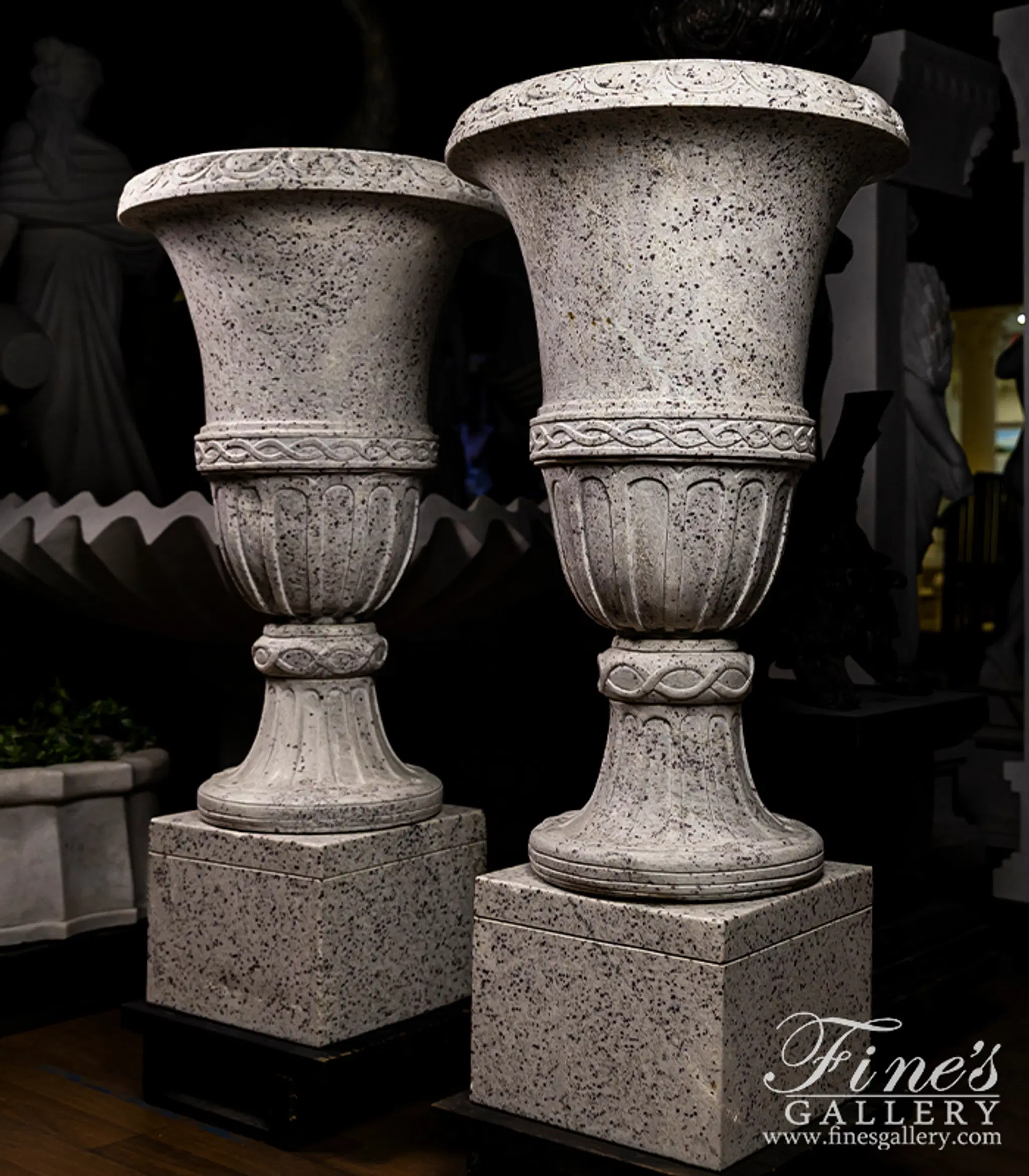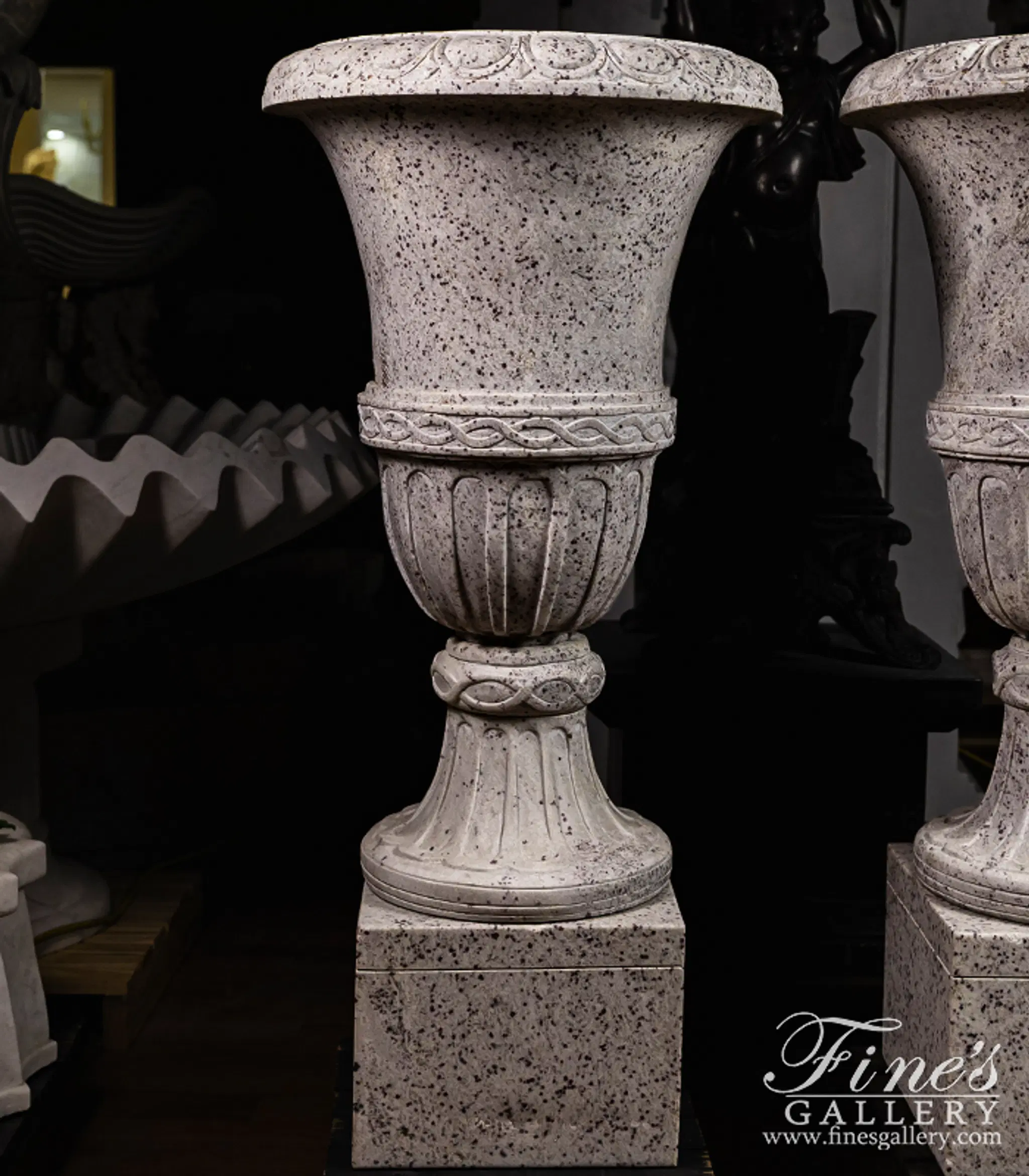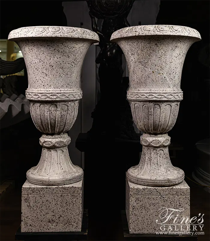 Kashmir White Granite Planter Pair - Traditional Outdoor Garden Planters - Solid Stone Decor - MP-420