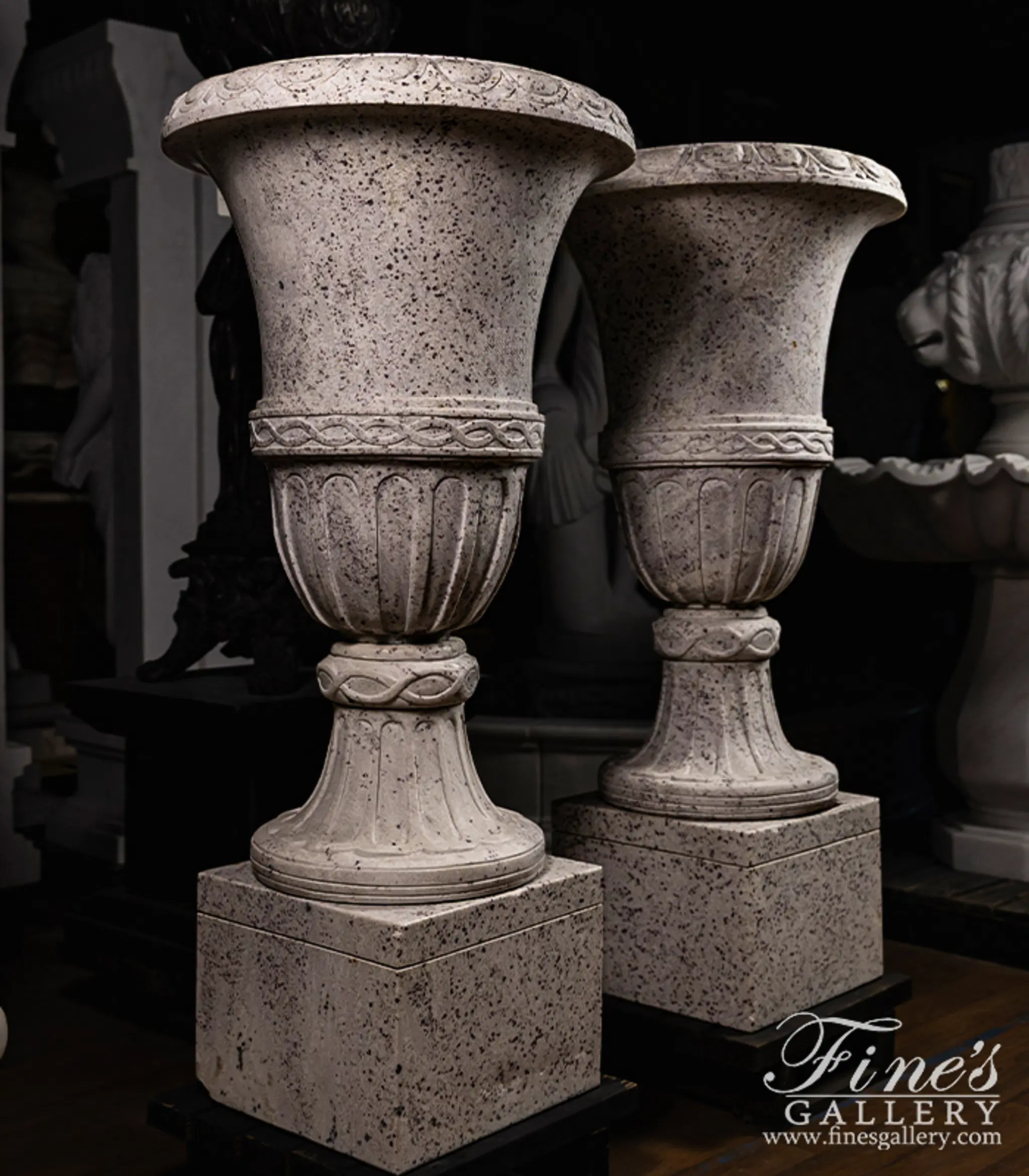 Kashmir White Granite Planter Pair - Traditional Outdoor Garden Planters - Solid Stone Decor