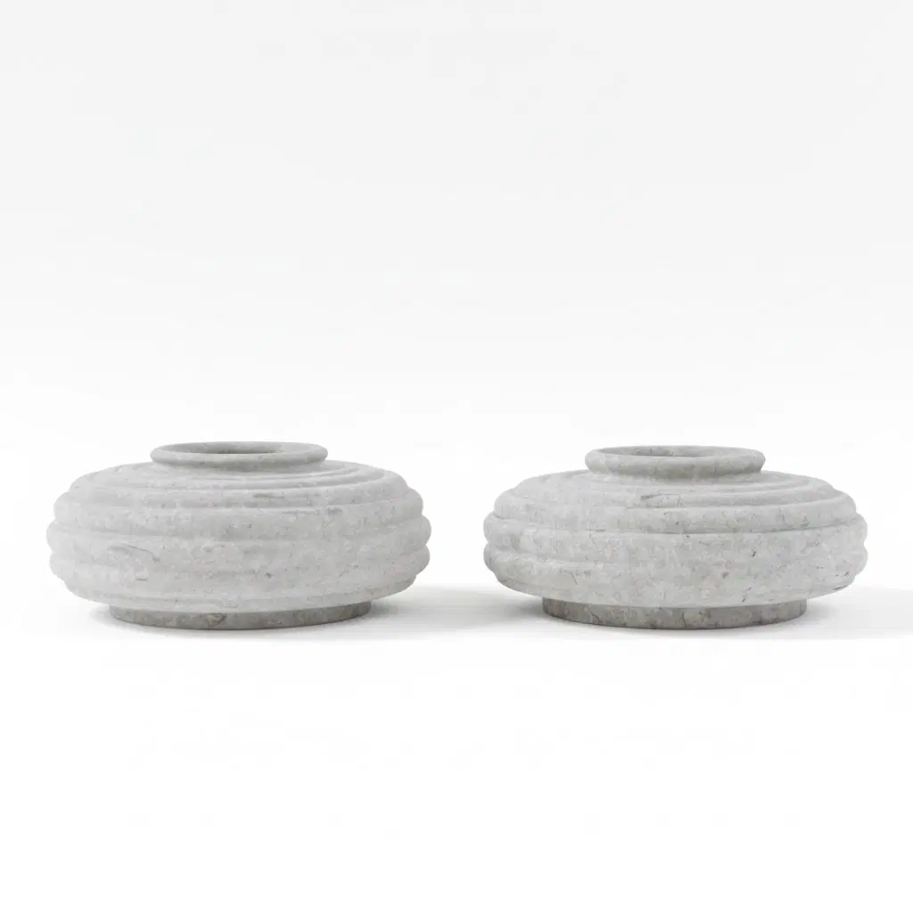 Modern Marble Urn Pair. A light cream marble. Price is for a pair.