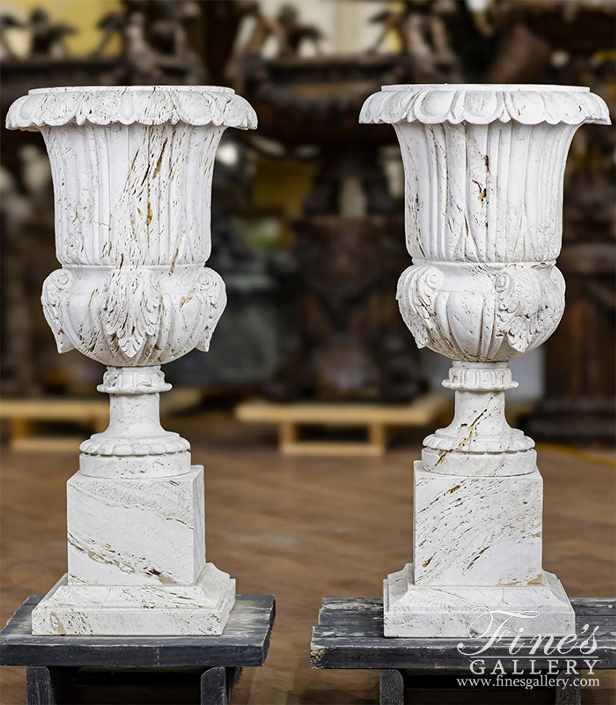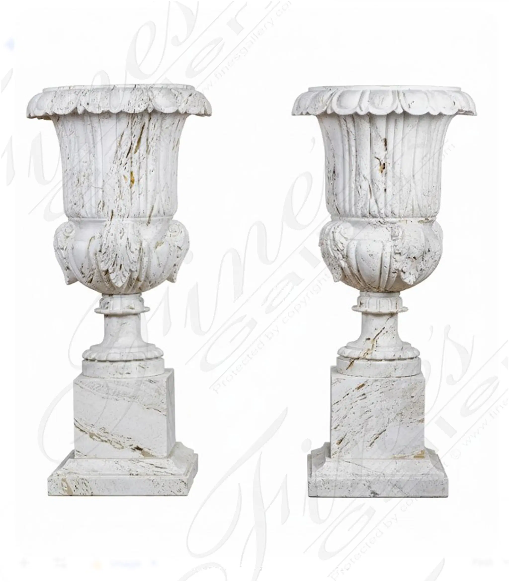 An Urn Pair in Italian Quarried Ivory Travertine - MP-470