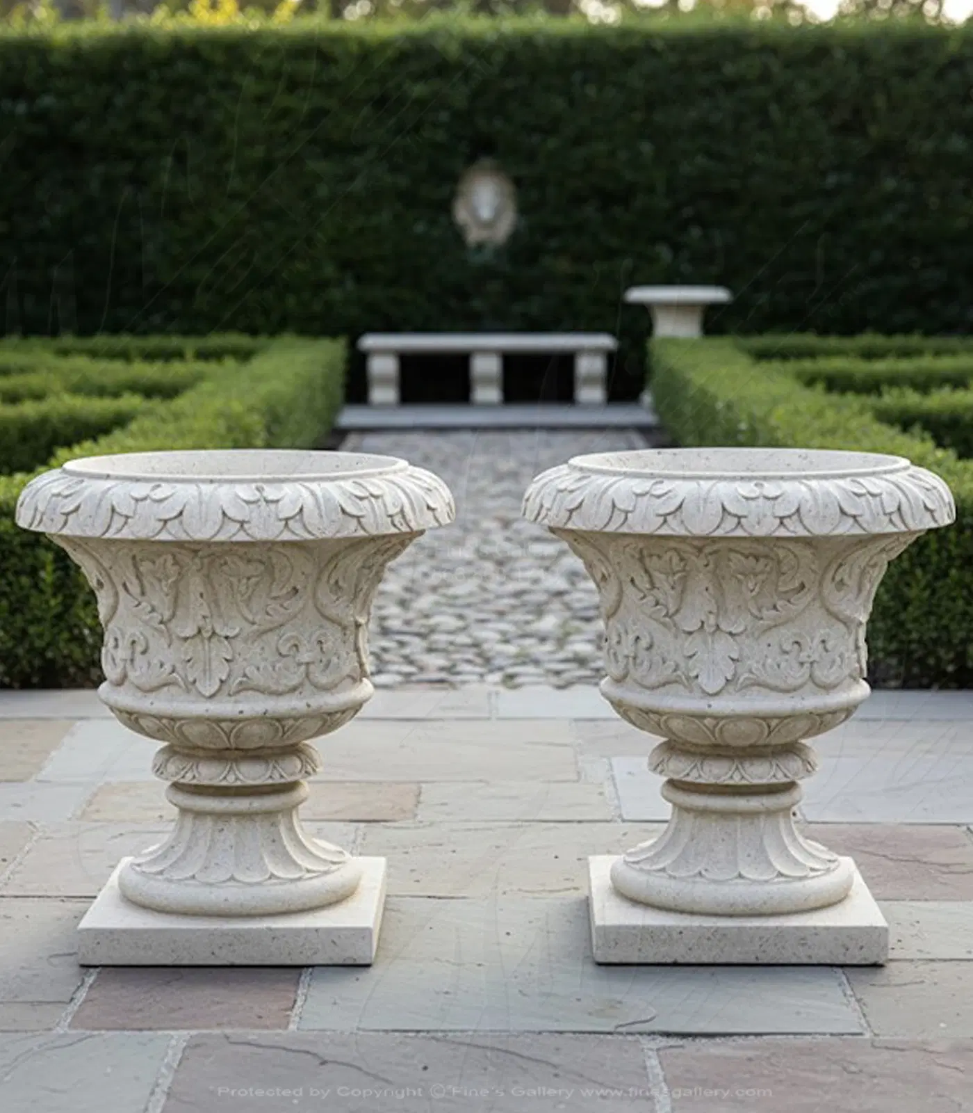 Classic Light Beige Travertine Marble Planter Pair - MP-520
