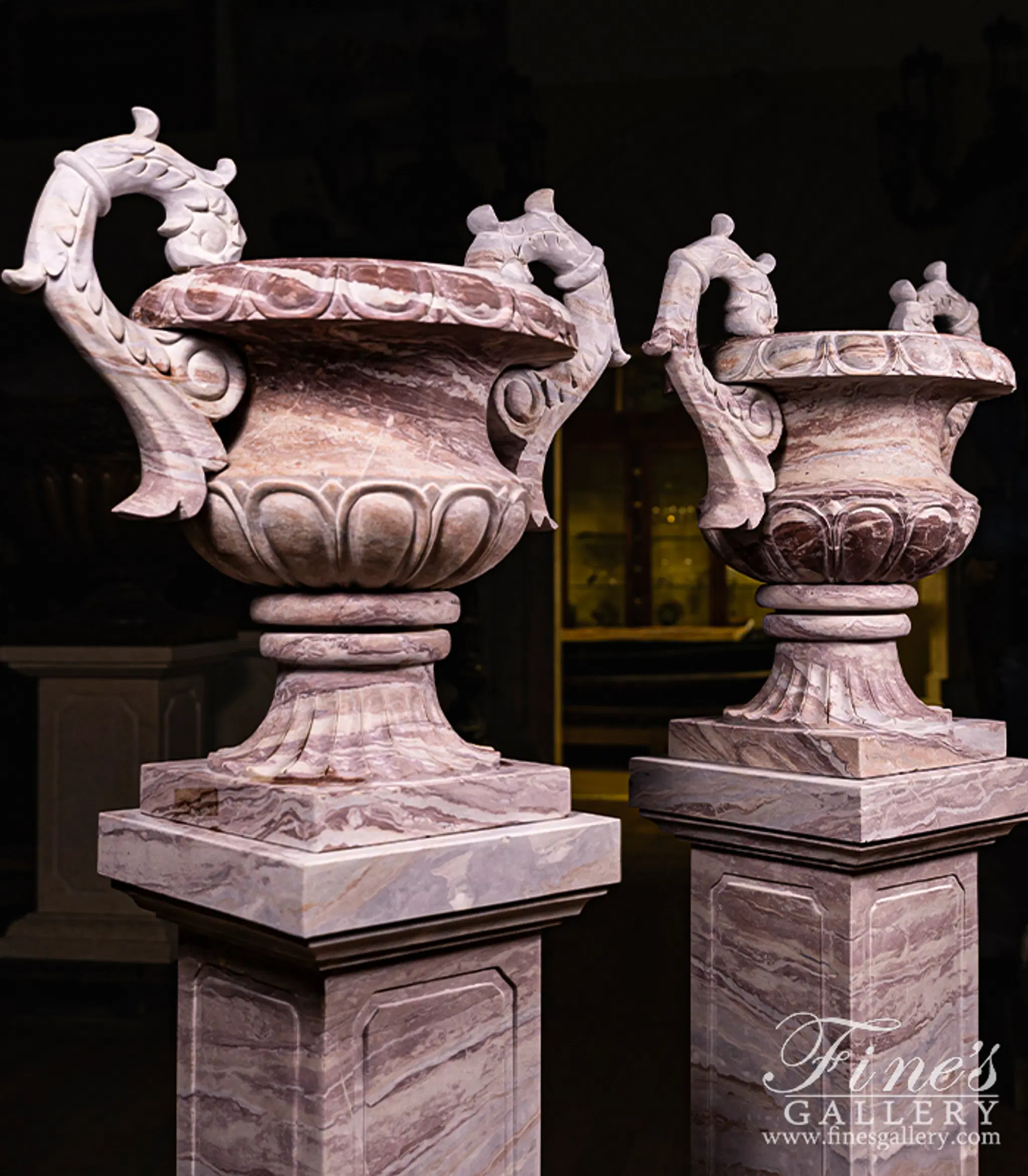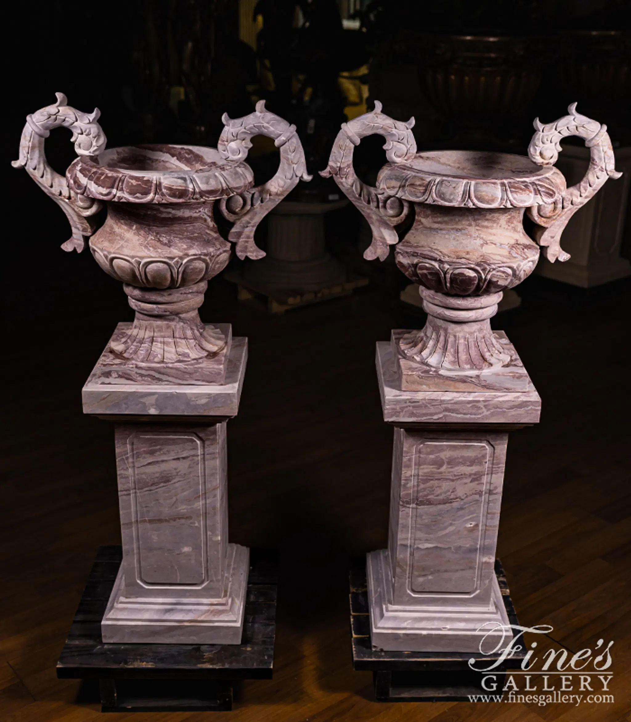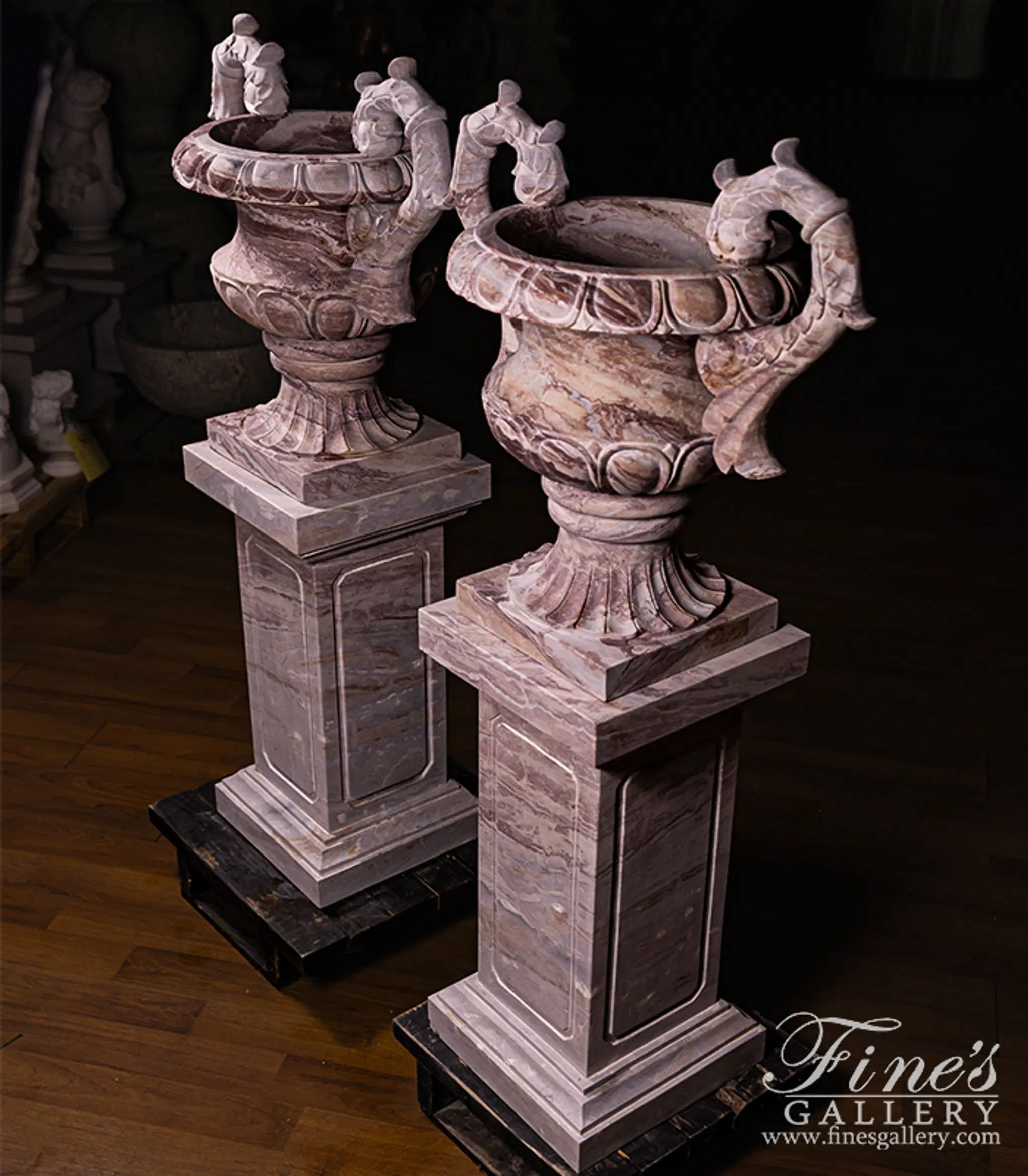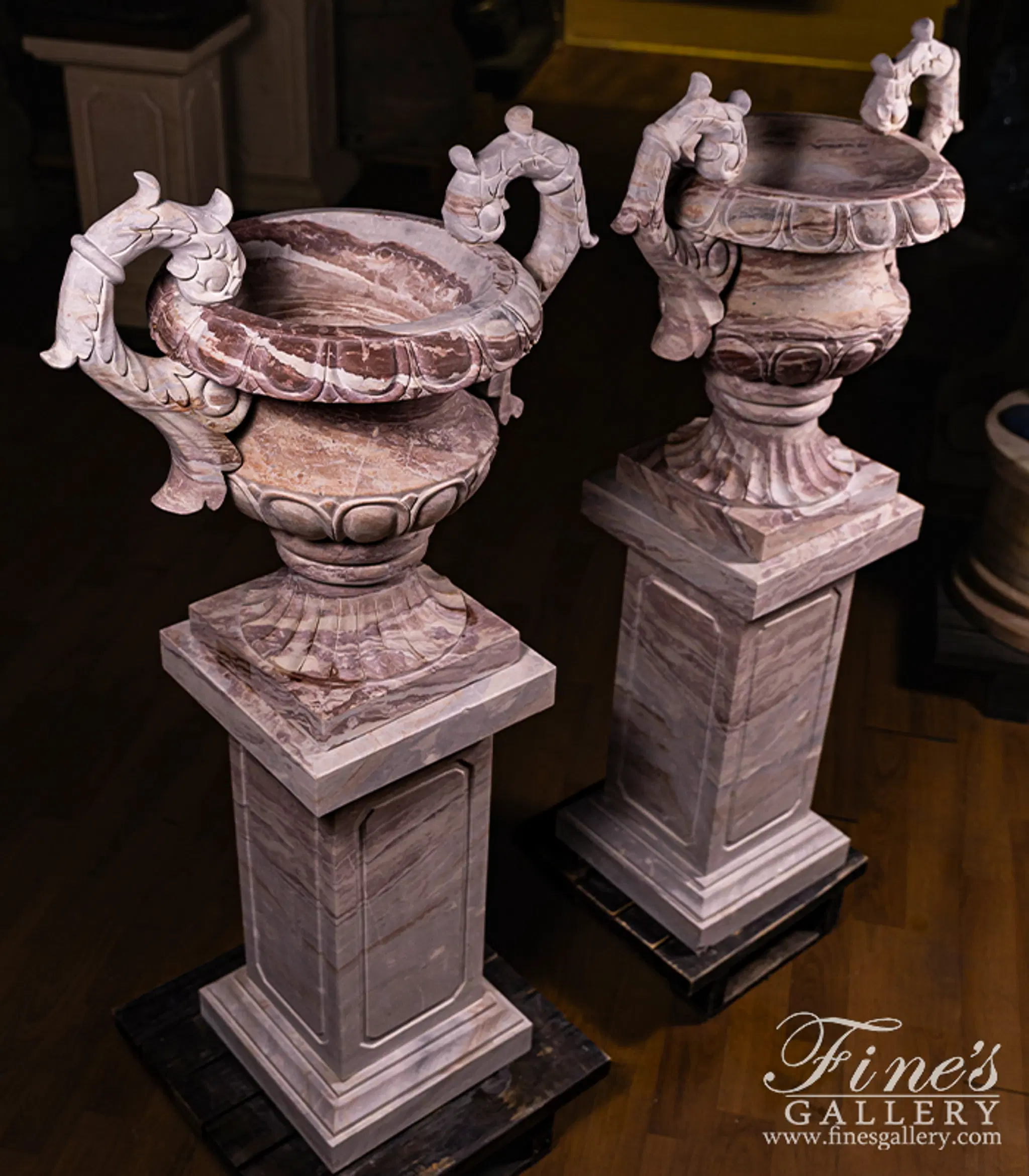 Exotic Urns and Pedestals in Arabascato Orobico Rosso Marble - MP-540 (View 2)
