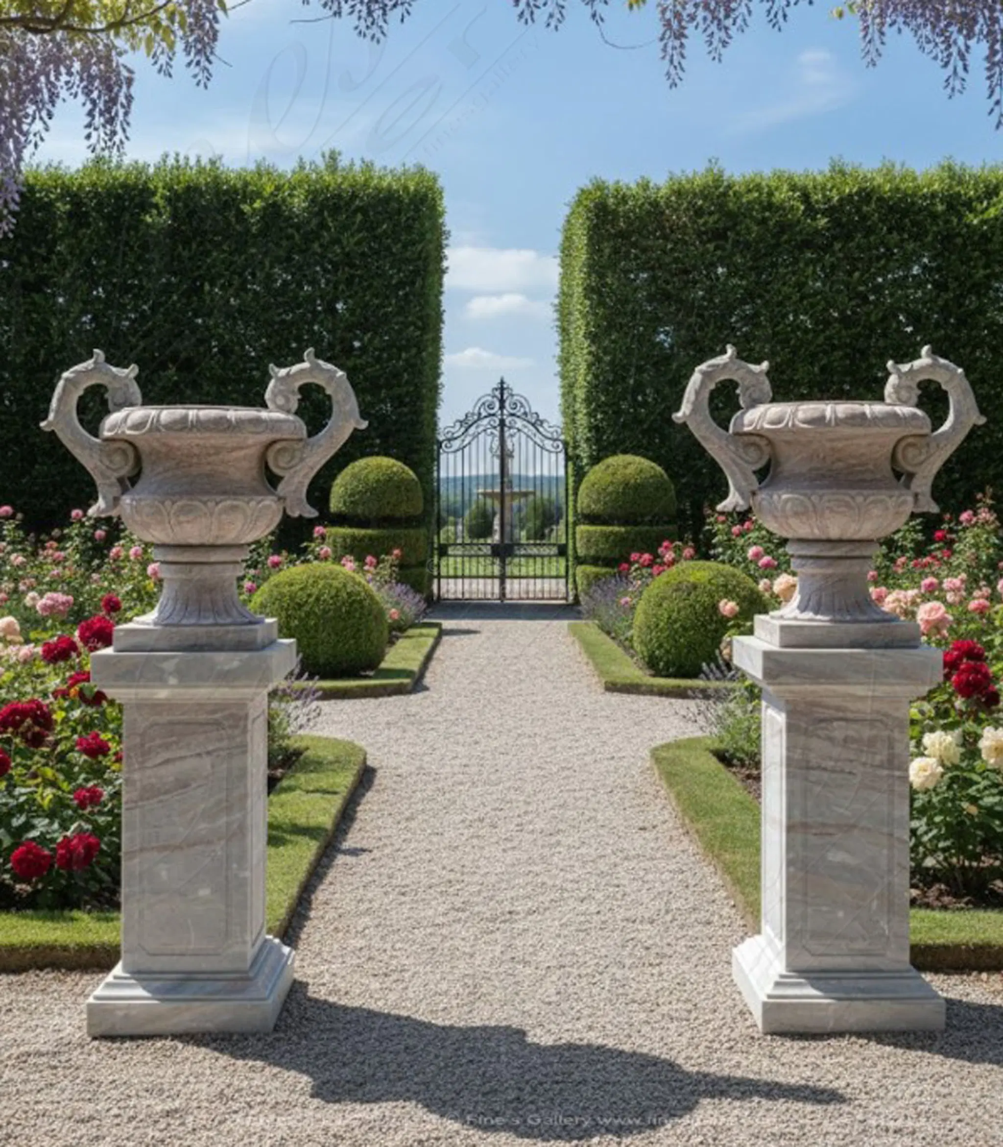 Exotic Urns and Pedestals in Arabascato Orobico Rosso Marble - MP-540 (View 4)