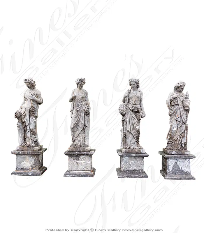 Four Seasons Statue Set in Rare Antique Gray Natural Stone - MS-1110